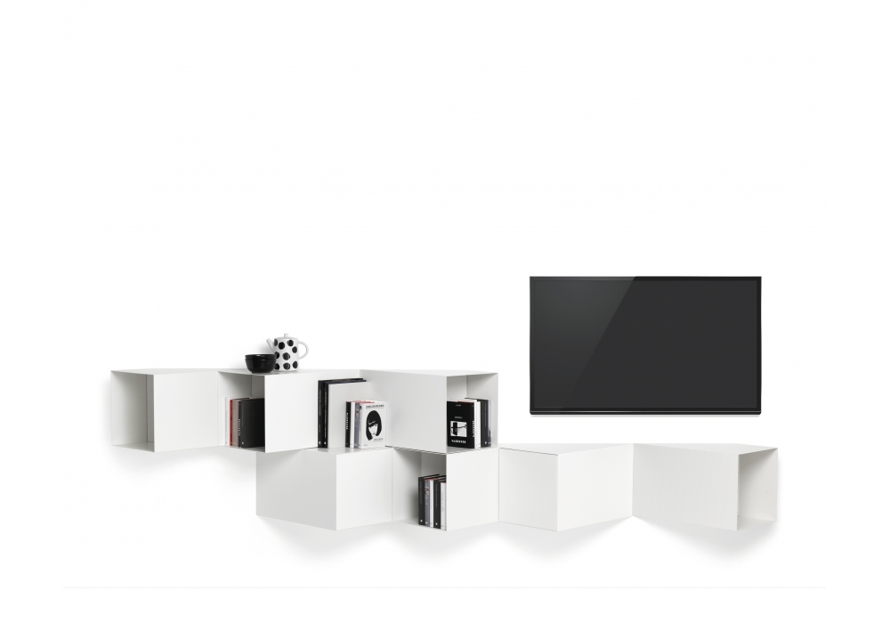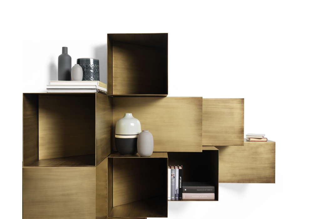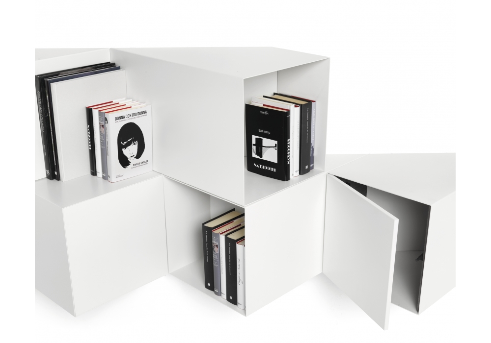 Cellula firmata da Studio Pang per Mogg è una libreria da parete in metallo. Disponibile in diverse composizioni.