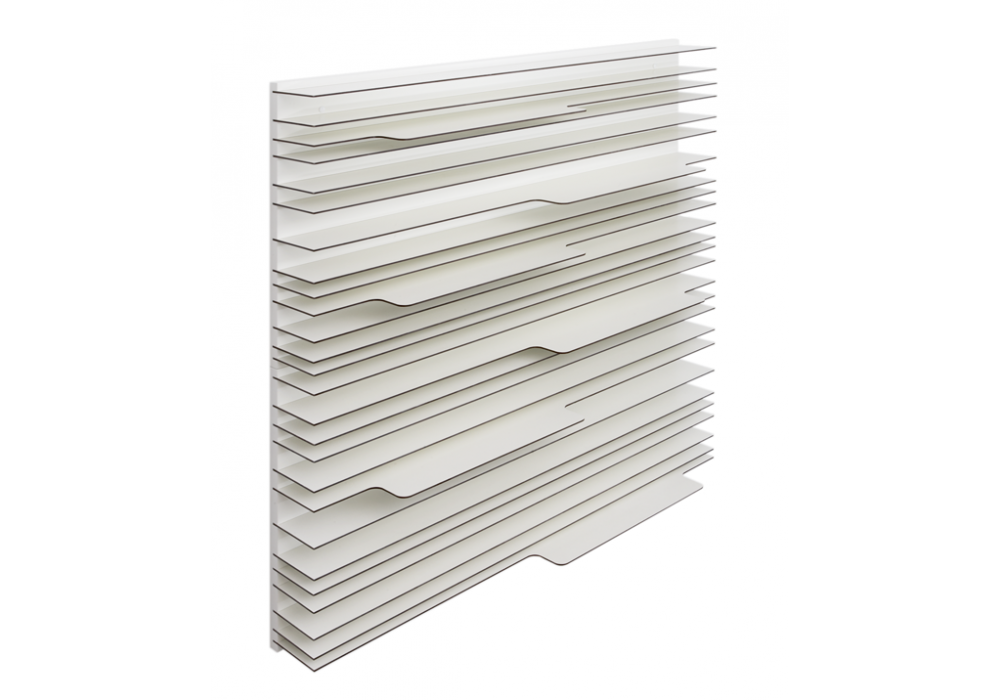 Paperback firmata da Studio Parade per Spectrum è un sistema di mensole con schienale in MDF laccato e 13 mensole, rivestite in HPL nei colori bianco o antracite. Disponibile anche in 3 dimensioni.
