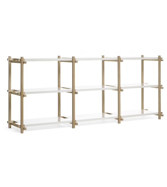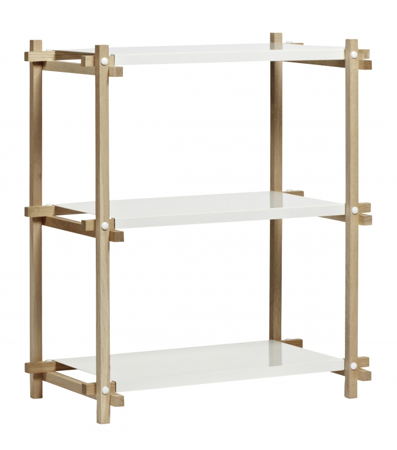 Woody Low prodotto e firmato da Hay è uno scaffale basso realizzato in rovere massello non trattato con ripiani in acciaio verniciato a polvere bianca. Disponibile in differenti dimensioni.