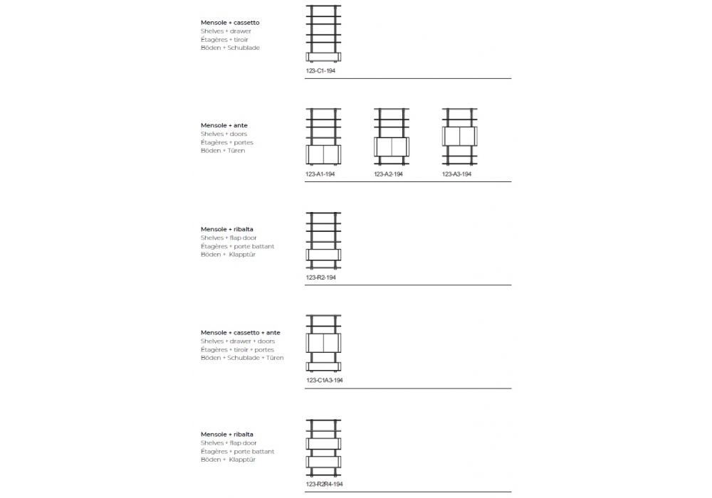 * Per ulteriori configurazioni, non esitate a contattare il nostro servizio clienti. Consigliato fissaggio a parete con ferramenta inclusa.