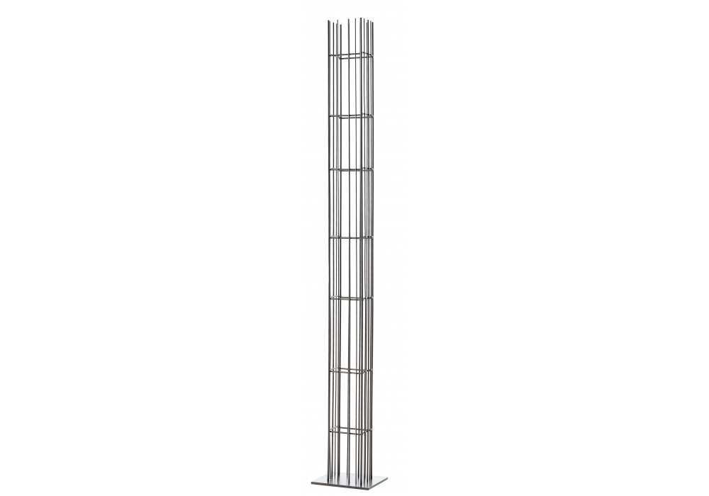 Metrica Tower firmata da Ctrlzak Studio per Mogg è una libreria autoportante realizzata in tondino di ferro con finitura brunita.