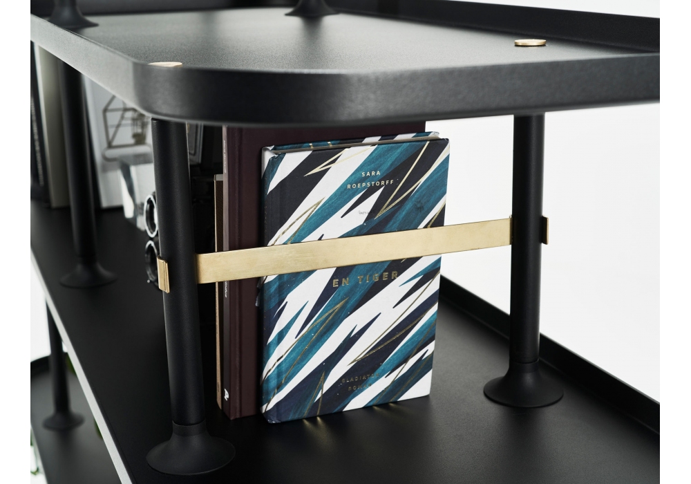 Slice firmato da 365 North per wendelbo è un sistema di mensole realizzato in acciaio verniciato a polvere nero e alluminio. Disponibile in 3 modelli.