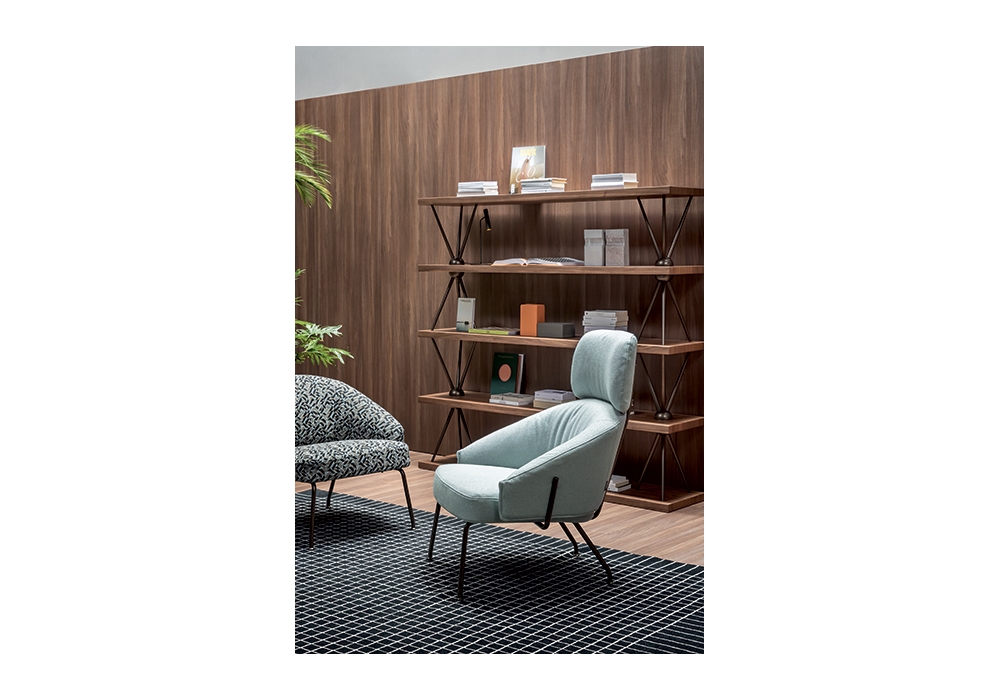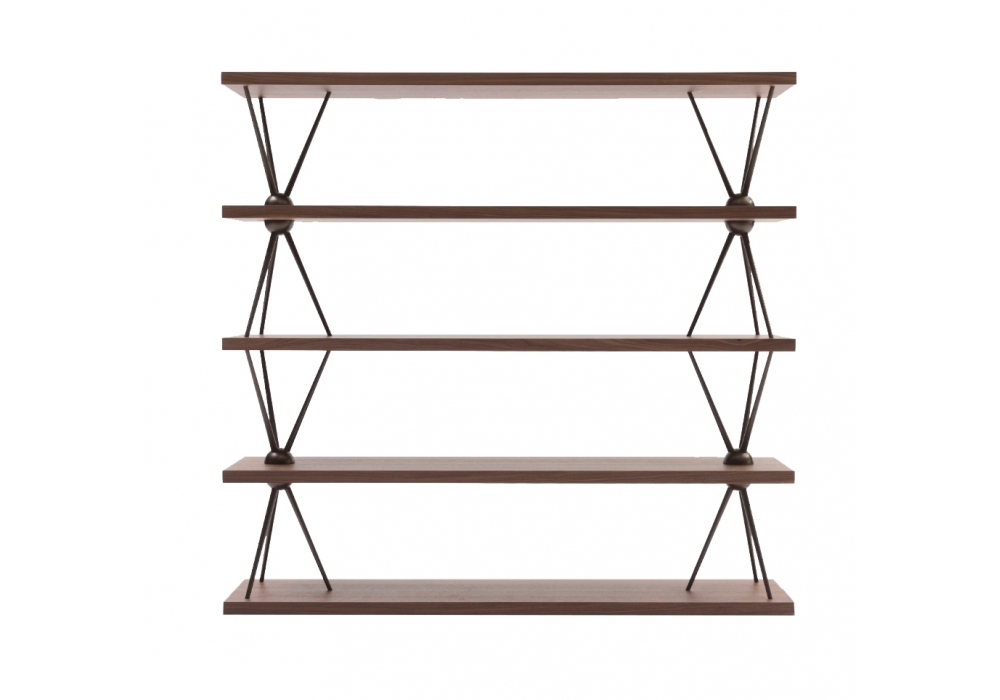 Tripodio firmata da Mario Mazzer per Bonaldo è una libreria con piani in legno impiallacciato e struttura in metallo. Disponibile in varie finiture.