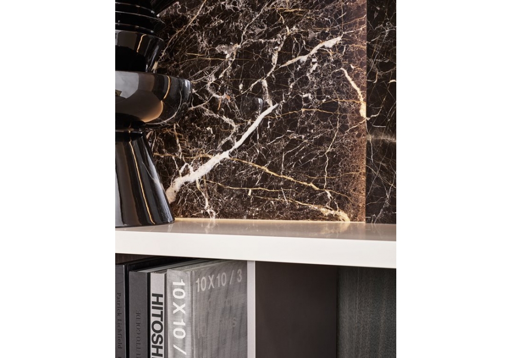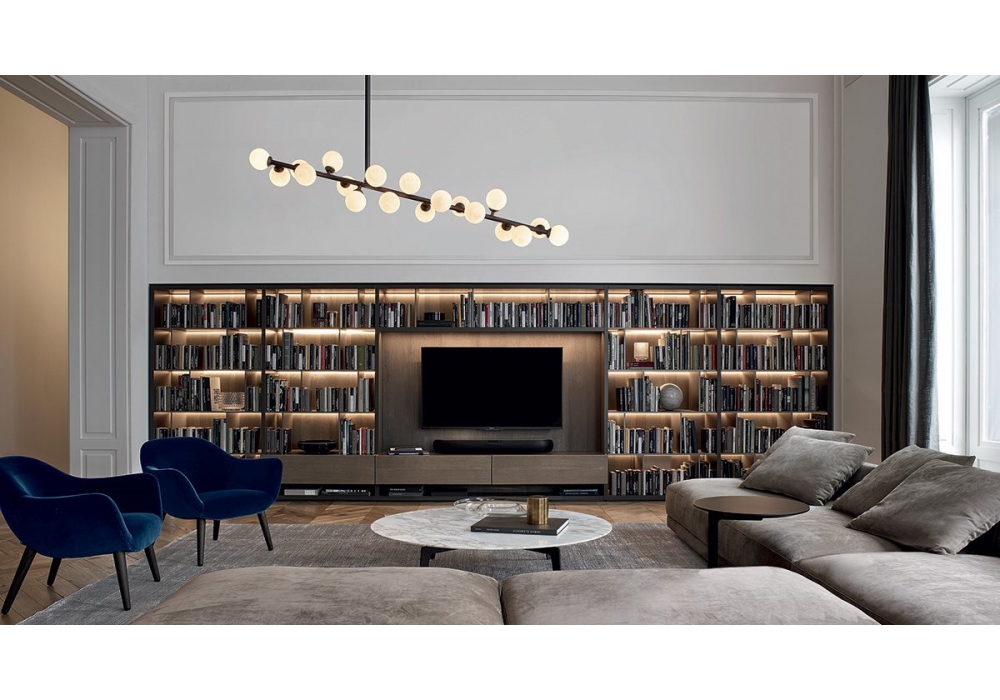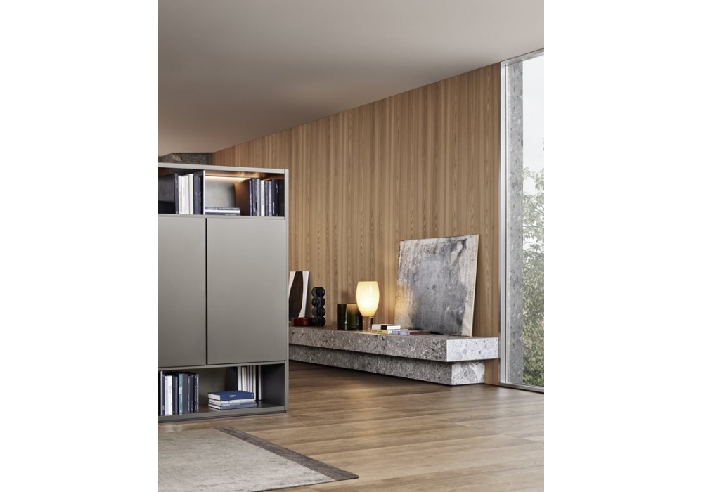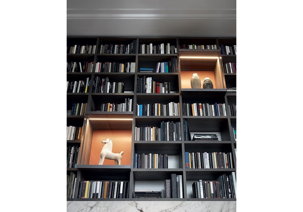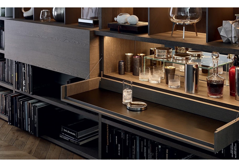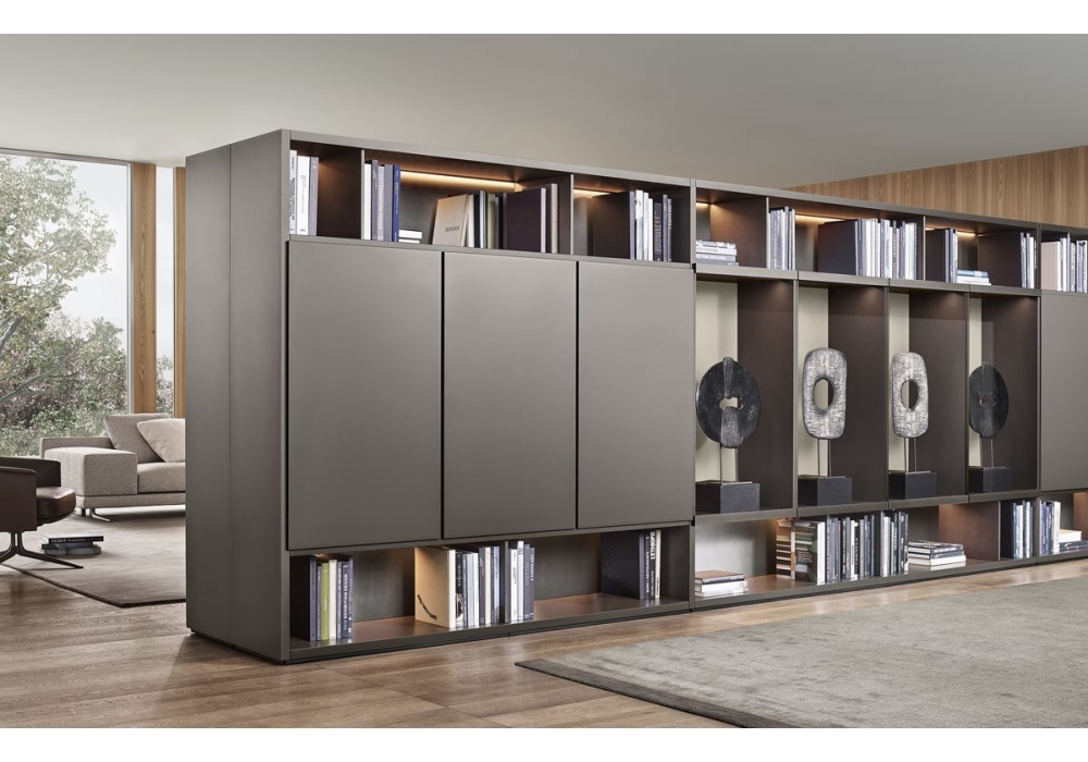 Wall System firmato da R&D Poliform è un sistema componibile che permette diverse possibilità di configurazioni. Gli elementi strutturali sono disponibili in laccato opaco, lucido o essenza.