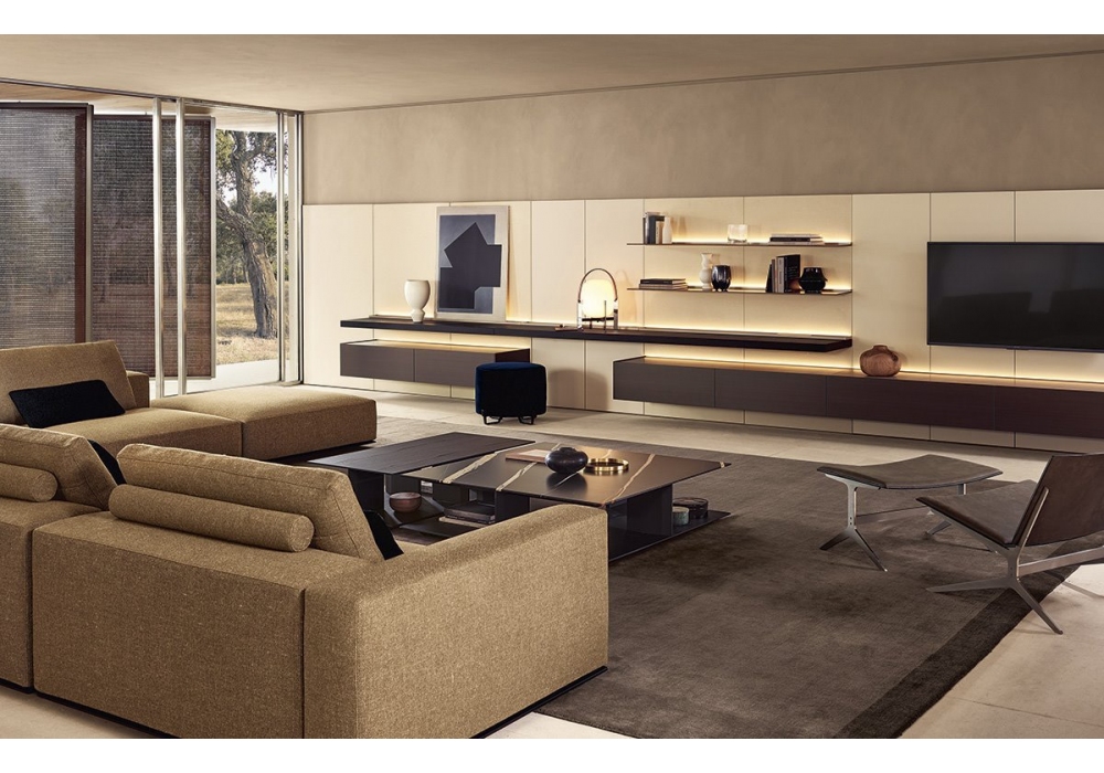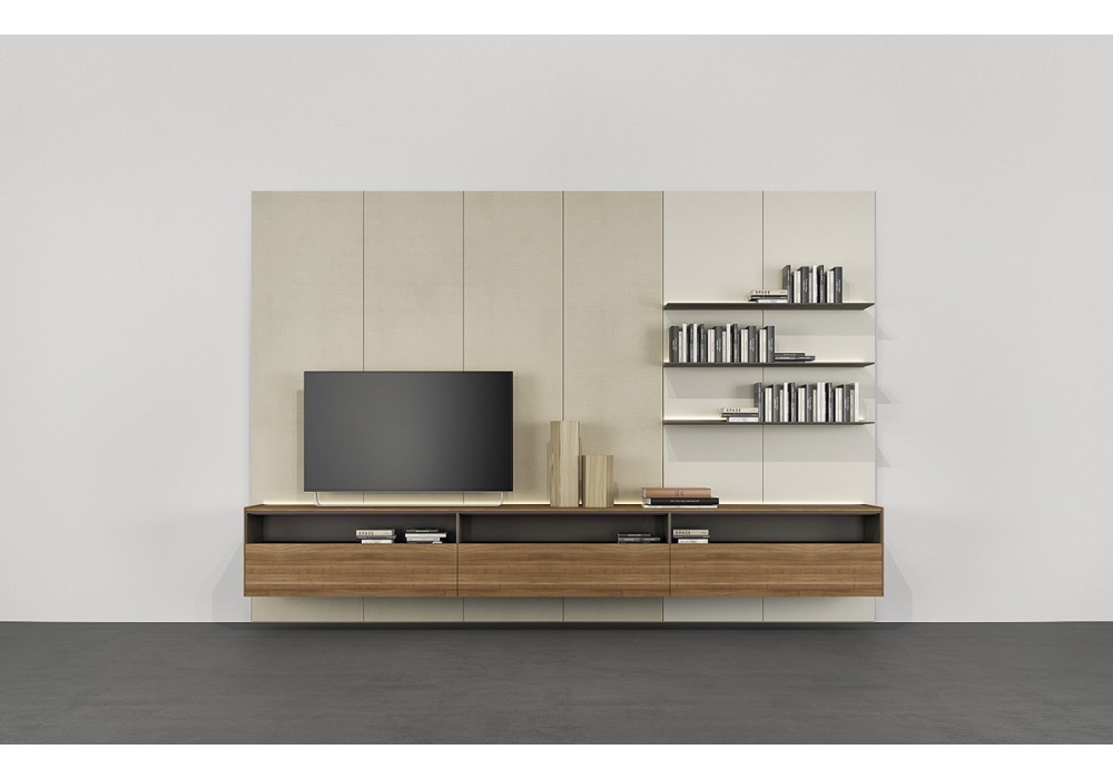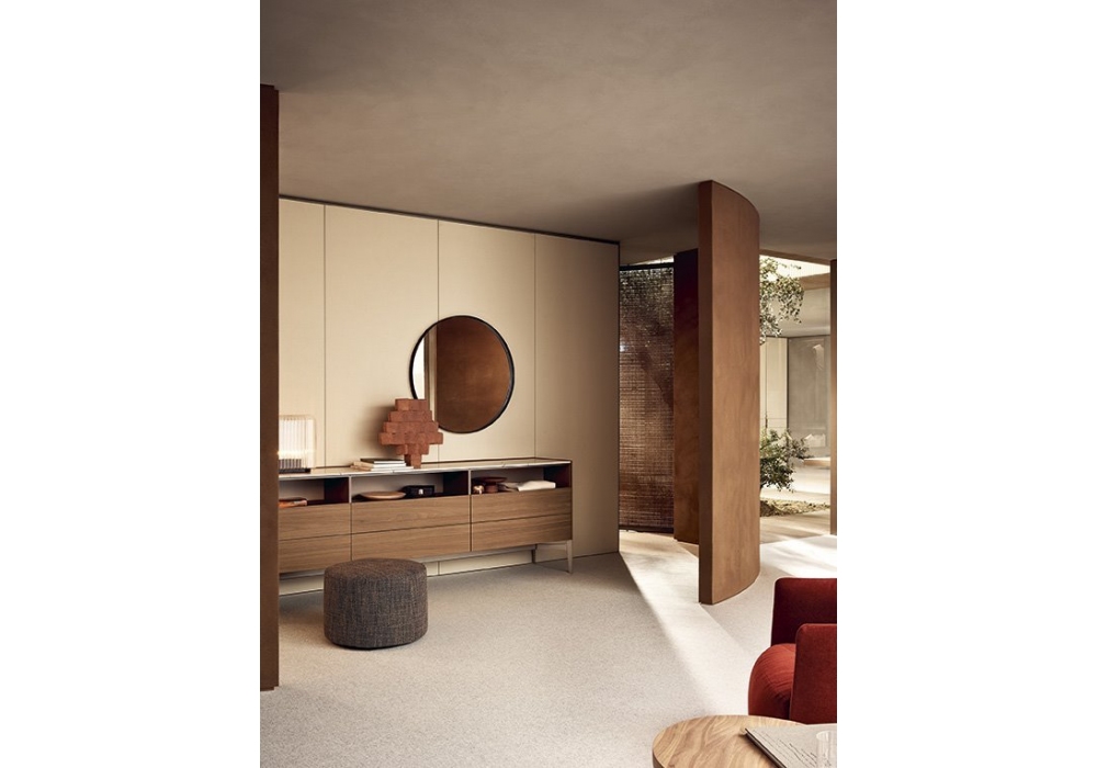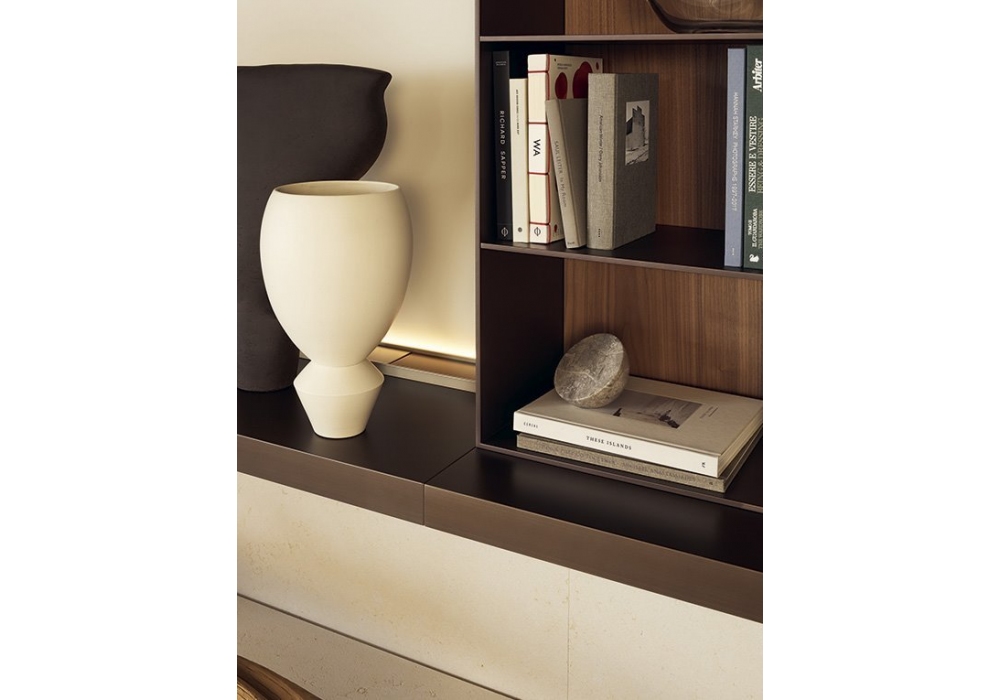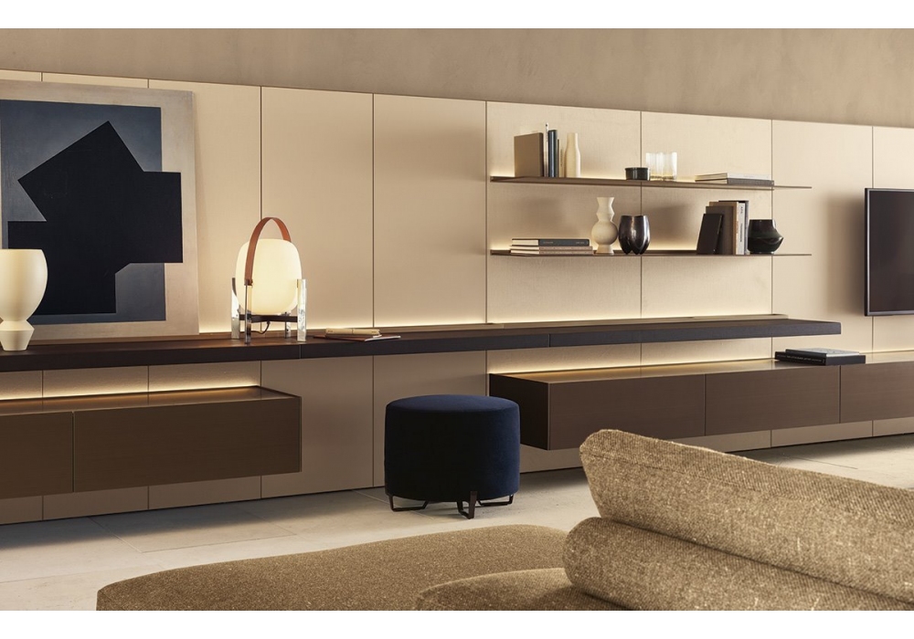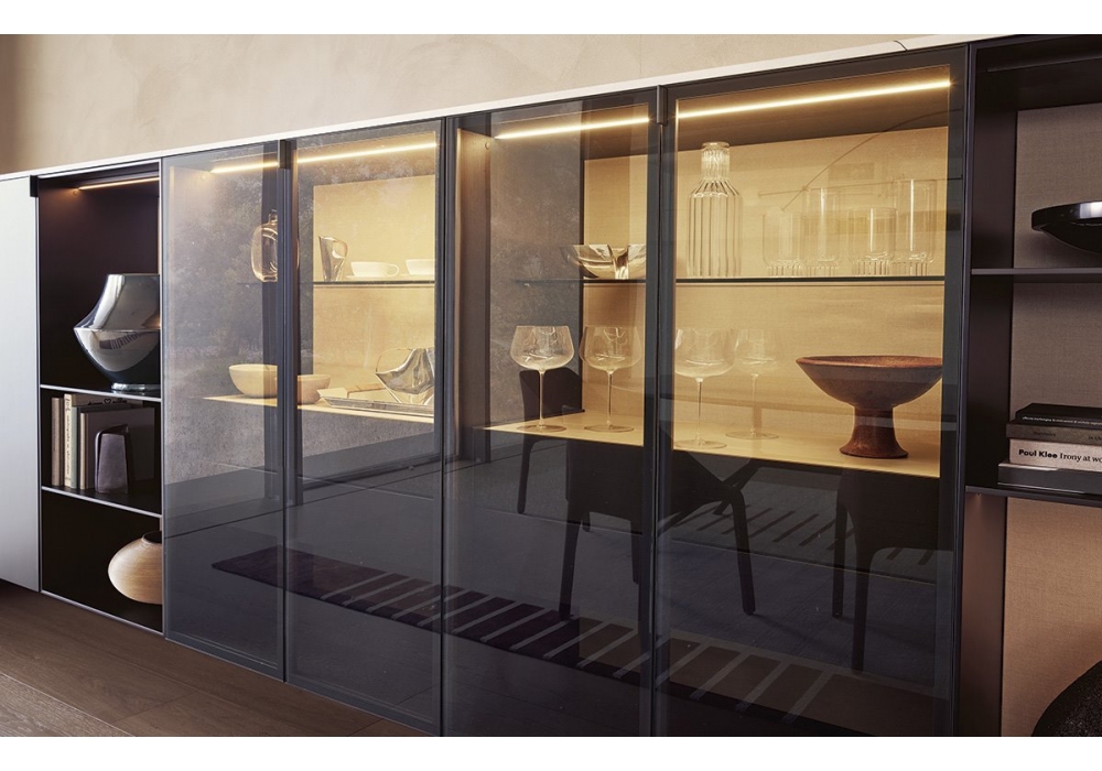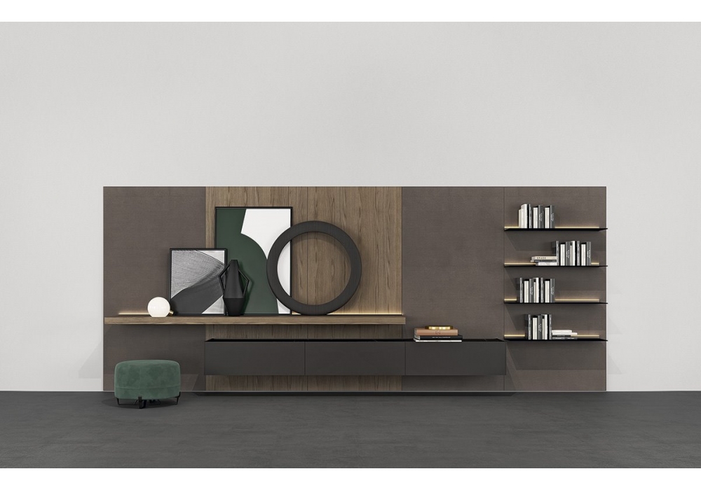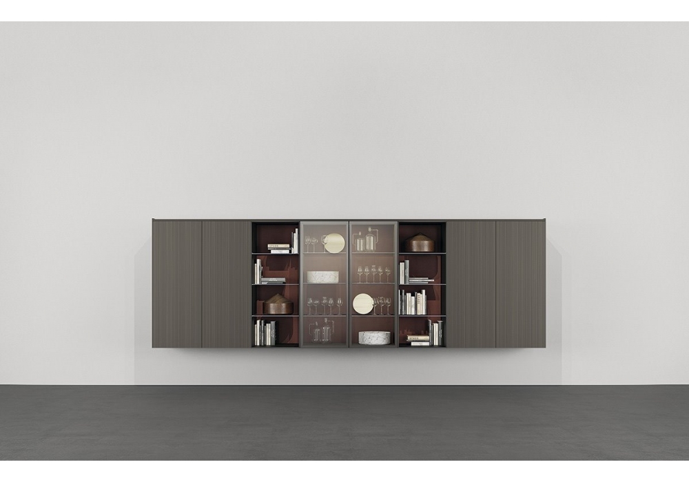 Code firmato da R&D Poliform è un sistema componibile che permette diverse possibilità di configurazioni. Si compone di diversi elementi: boiserie, contenitori sospesi, mensole, vani a giorno, vetrine, cassetti, ante battenti o a ribalta. Alcuni possono essere utlizzati come elementi a sé o in combinazione ad armadi e cabine armadio.