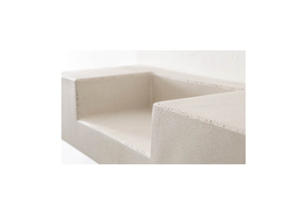 Concrete firmata da DSH per Minotti Italia è una mensola in cemento fibrorinforzato ad alta resistenza, finitura sabbiato fine disponibile in cemento bianco o cemento grigio.