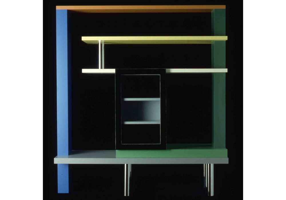 Le Palme firmata da Gerard Taylor per Memphis Milano è una libreria realizzata in laminato, vetro e metallo.