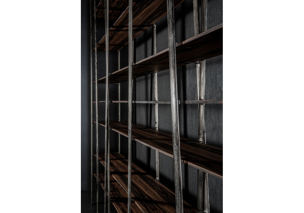 Web firmata da Massimo Castagna per Henge è una libreria composta da montanti strutturali in Sand Cast Peltro e ripiani in legno massello impiallacciato. Disponibile in diverse finiture e dimensioni.