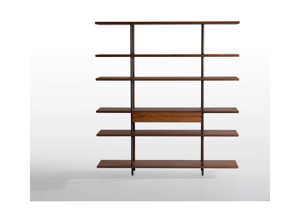 Arial firmata da Gabriele & Oscar Buratti per Potocco è una libreria autoportante realizzata con struttura in metallo e ripiani in legno di frassino o in noce Canaletto. Disponibile in diverse finiture e dimensioni. Cassetto opzionale.