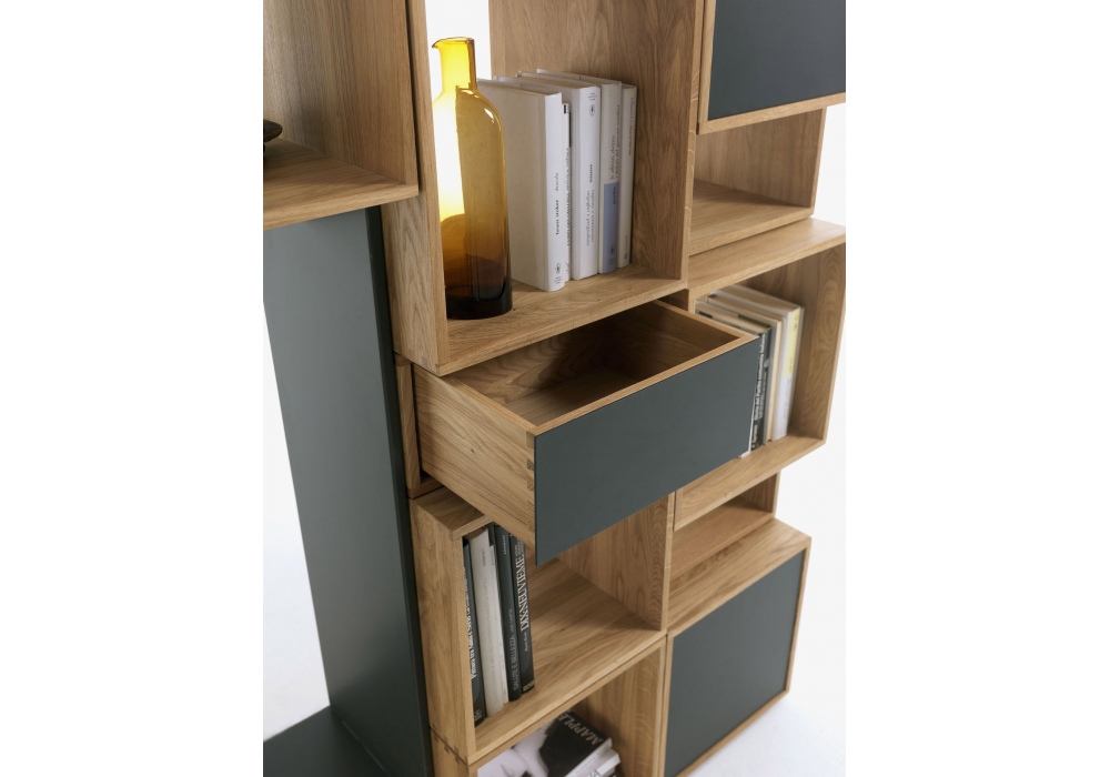 Freedom firmata da Riva 1920 è una libreria realizzata in legno massello, costituita da moduli componibili impilabili ed accostabili tra loro attraverso specifica ferramenta di montaggio. Flessibile sulla base delle esigenze d’arredo vede la possibilità di inserimento di schienali, ante e cassetti assemblati con incastri a coda di rondine e dotati di sistema di apertura push-pull e guide metalliche. Disponibile con vano porta TV fisso o girevole, dotato di sistema passacavi. A richiesta è disponibile con elementi “bifacciali” e può essere utilizzata come elemento divisorio all’interno dell’ambiente.