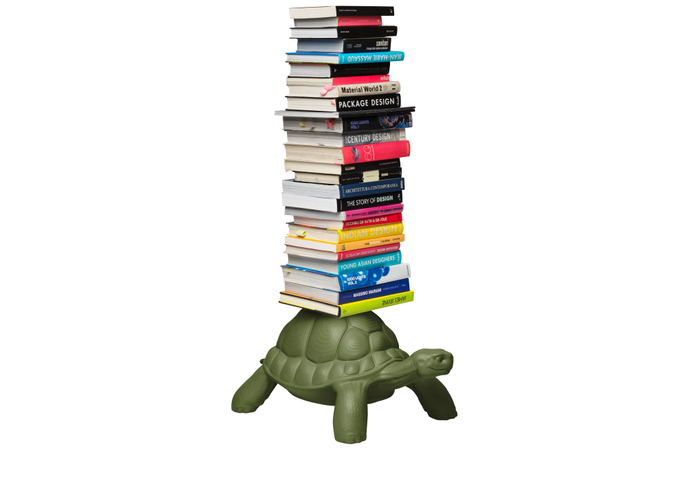 Turtle Carry firmata da Marcantonio per Qeeboo è una libreria realizzata in polietilene e metallo disponibile in differenti finiture.