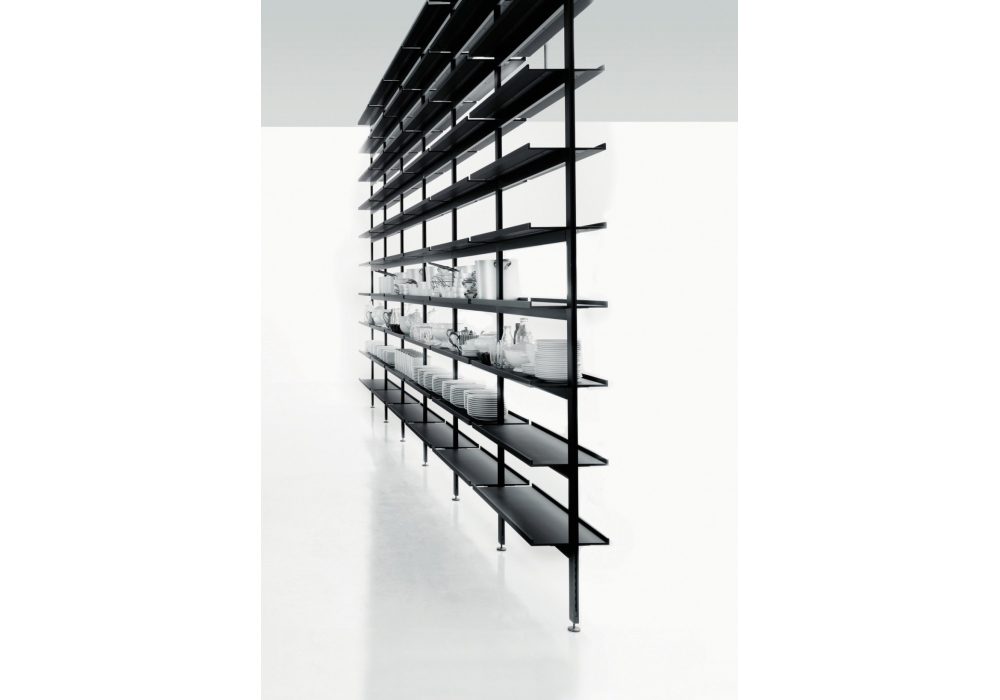 Brompton firmato da Design Piero Lissoni per Boffi è un sistema di scaffali a ripiani e contenitori adattabile a tutti gli ambienti della casa, dalla zona giorno alla zona notte, ai bagni. La struttura portante è in montanti di alluminio anodizzato in colore nero opaco con cremagliera interna per l'alloggio di mensole, contenitori o aste appendiabiti. Le mensole e i contenitori con frontali sono disponibili in bilaminato, in laccato e impiallacciati legno. Contattare il nostro servizio clienti per progettare la vostra unità.