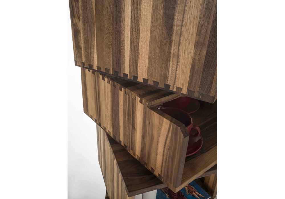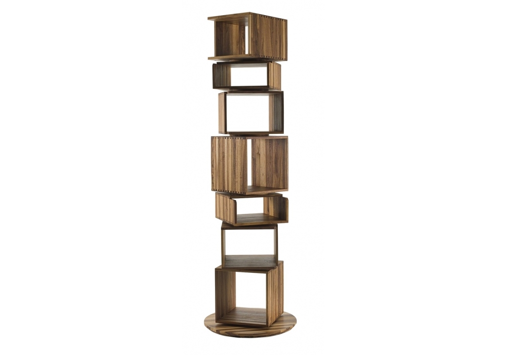 Step By Step firmata da Giuliano Cappelletti per Riva 1920 è una libreria costituita da moduli impilati a colonna su base girevole. Legno massello spessore 1,5 cm e incastri a coda di rondine caratterizzano ogni elemento.