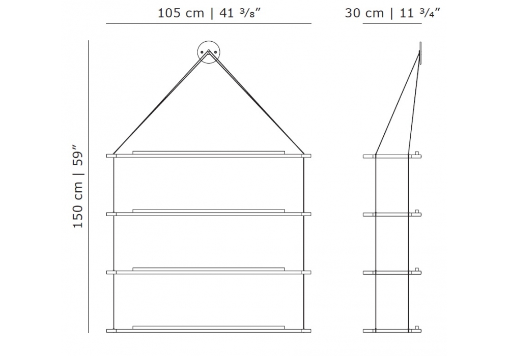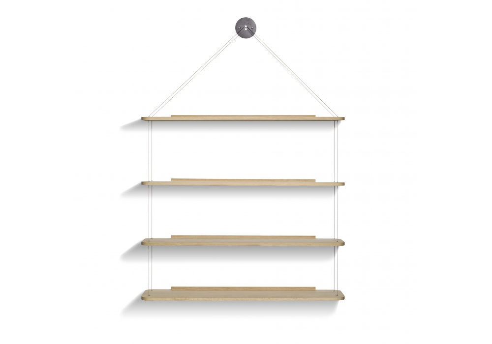 Libreria Pensile firmata da Achille & Pier Giacomo Castiglioni per Karakter è una libreria pensile realizzata con mensole in rovere massello e fili d'acciaio. Disponibile in 2 finiture.