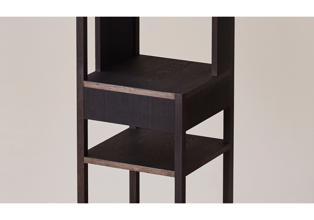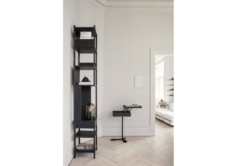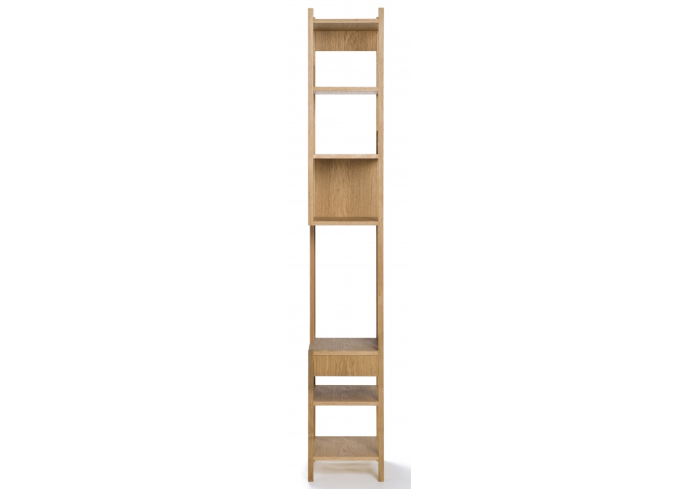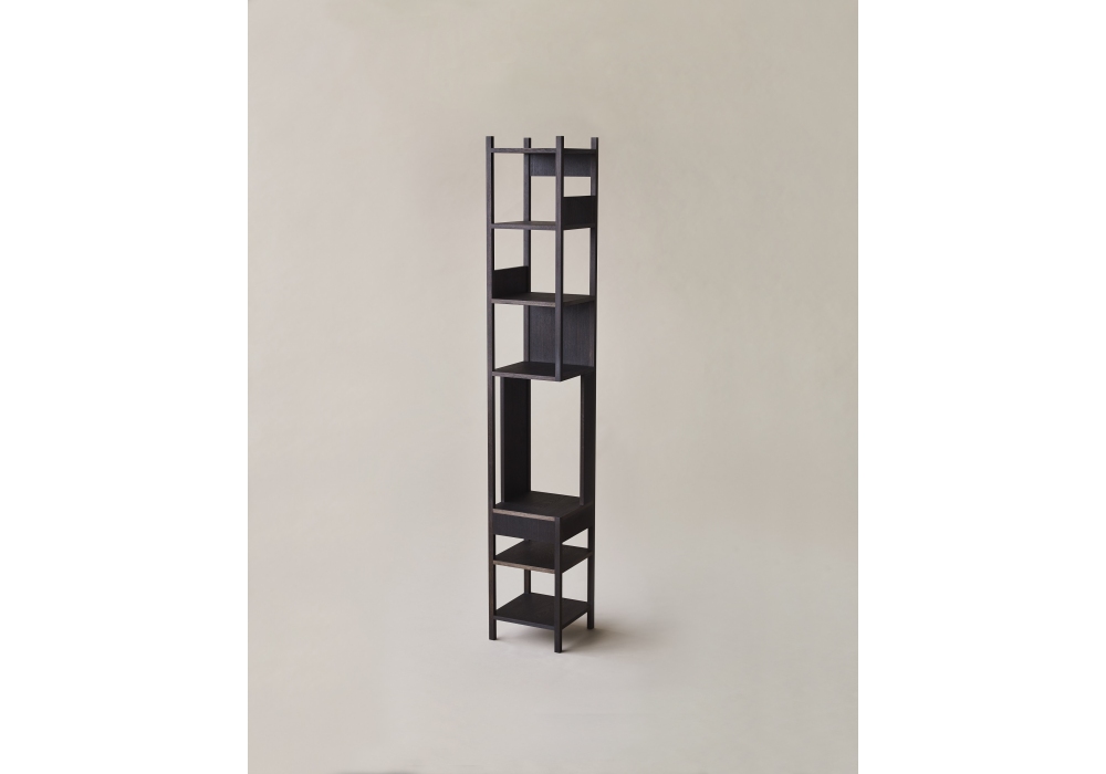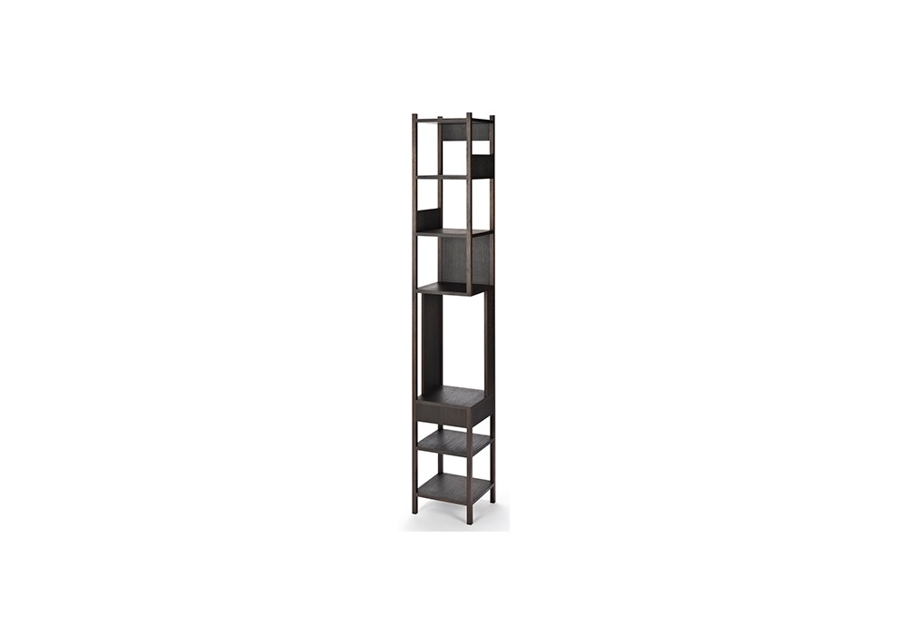 Lungangolo firmato da Achille Castiglioni per Karakter è uno scaffale realizzato in rovere massello impiallacciato e trattato. Disponibile in diverse finiture e modelli.