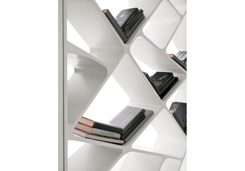 Shanghai XL firmata da Giuseppe Bavuso per Alivar è una libreria realizzata con struttura esterna in rovere termotrattato o tinto nero o in MDF laccato. Struttura interna in Baydur strutturale espanso ottenuto tramite stampo in acciaio, rivestita in cemento spatolato grigio o laccata opaca.