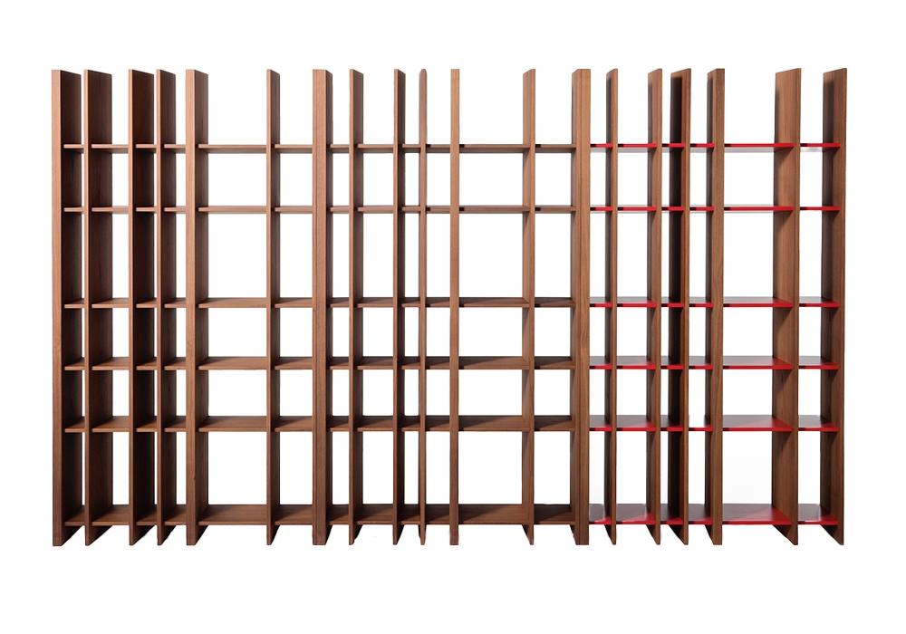 Sipario LC firmata da Carlo Colombo per Emmemobili è una libreria elemento divisorio/libreria costituito da montanti verticali con diverse angolature in legno multistrato impiallacciato. Sipario LC è caratterizzata dall’avere un contenitore sospeso attrezzato con ante a battente, cassetti e un vano a giorno con profilo a 45°.