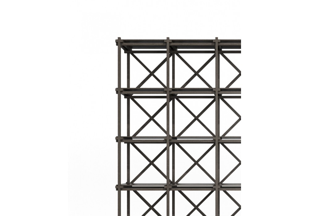 Treillage firmata da Ferruccio Laviani per Emmemobili è una libreria elemento divisorio/libreria realizzata con liste di legno massello. Ripiani realizzati in legno multistrato impiallacciato. Disponibile in differenti dimensioni e composizioni.