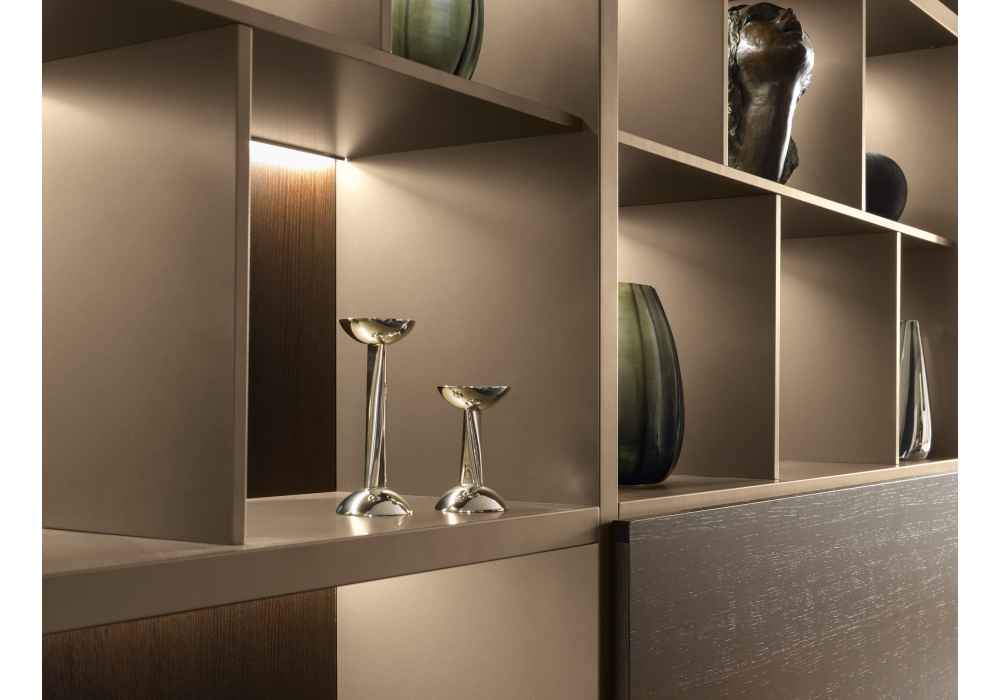 Crossing firmato da Mauro Lipparini per MisuraEmme è un versatile sistema modulare di pannelli con cui creare scaffali a parete. Totalmente regolabile lungo gli assi tridimensionali, può supportare fino a 400 kg. Il programma offre una serie di moduli di diversi tipi e dimensioni, pensili con ante a ribalta, a battenti o scorrevoli e cassetti in diverse dimensioni. Crossing è disponibile nella versione Fusion (con parti in agglomerato di legno a vista o laccato) o nella versione Listellare (listellare di pioppo impiallacciato o stratificato). Gli scomparti contengono uno speciale sistema di illuminazione a Led. Finiture: laccato opaco, colori lucidi, legno naturale, impiallacciatura / rivestimento.