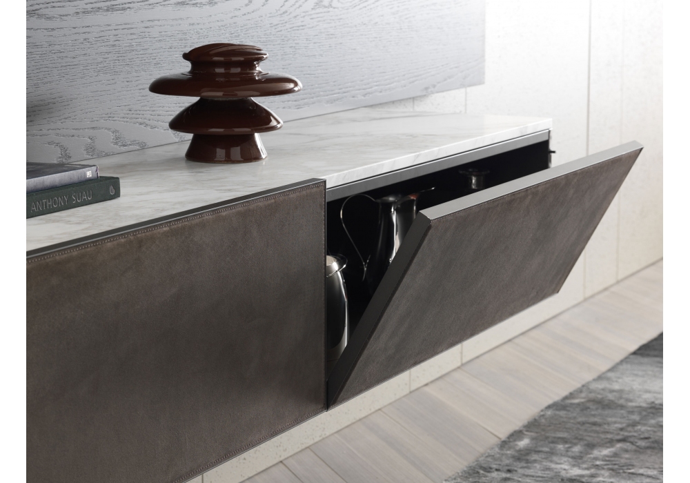 Tao firmato da Mauro Lipparini per MisuraEmme è un sistema modulare a giorno caratterizzato da una precisione compositiva e una cura minuziosa dei dettagli. Il risultato è un design lineare che si distingue per l'uso sapiente di materiali diversi, che si combinano in modo armonioso e originale. La ricerca della perfezione estetica è accompagnata dalla massima attenzione per la funzionalità, che rende le soluzioni Tao adatte alle esigenze di un pubblico attento ed esigente. Le soluzioni compositive Tao si distinguono per l'uso sapiente di finiture come il laccato opaco e lucido, l'essenza, il nobilitato, il vetro, l'ecopelle e il tecnomarble.