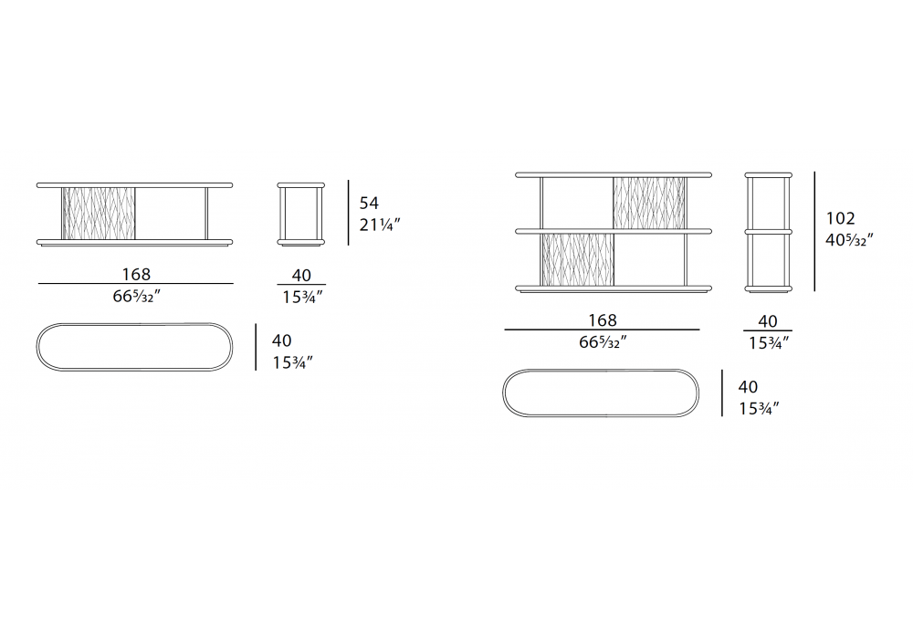 | Dimensioni | 168 x 40 x H 54 cm; 168 x 40 x H 102 cm. |