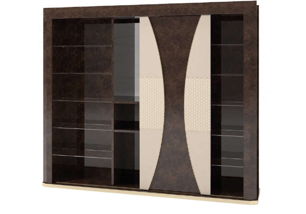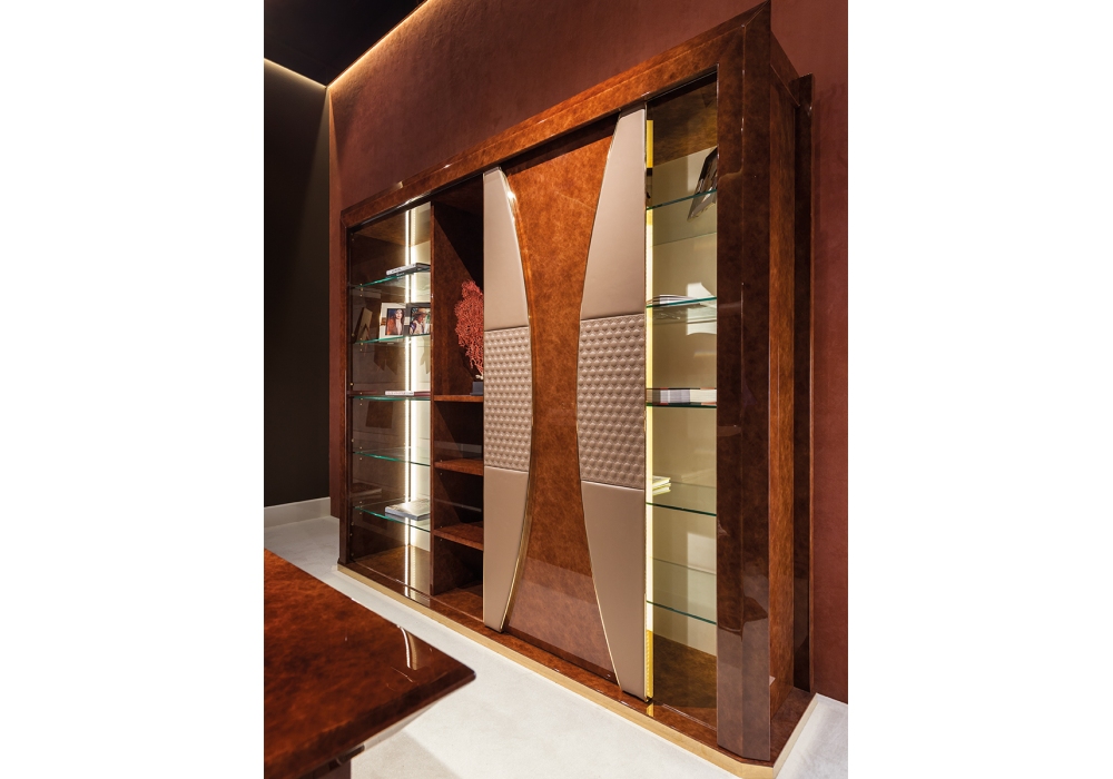 Vogue firmata da Andrea Bonini per Turri è una libreria con struttura in MDF, multistrato e pannelli di particelle di legno laccato lucido con rivestimento in differenti pelli. É dotata di un'anta scorrevole con rivestimento in pelle stampata. All'interno sono presenti dieci ripiani in vetro, tre ripiani in legno laccato lucido ed un vano centrale dotato di specchio.