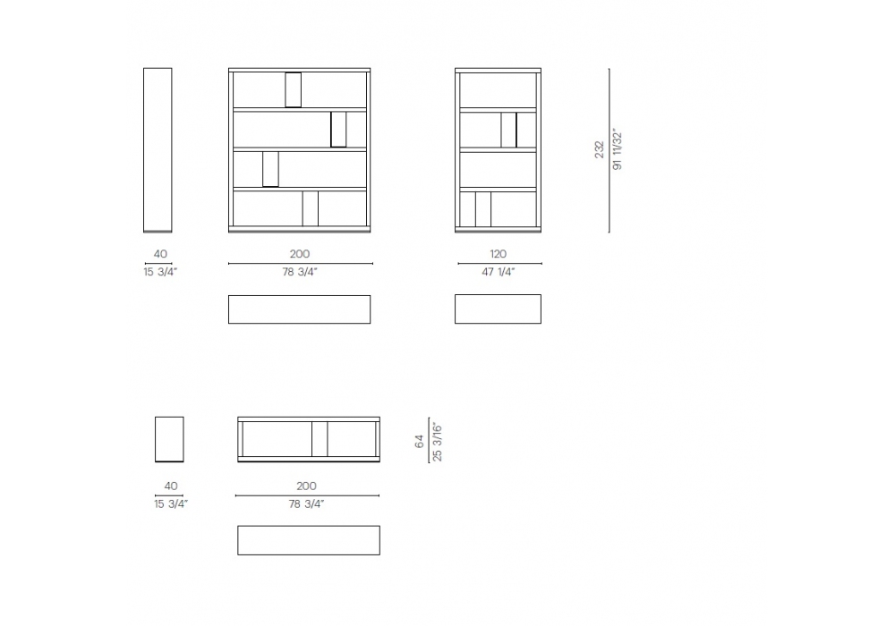 | Dimensioni | 200 x 40 x H 232 cm; 200 x 40 x H 64 cm. |