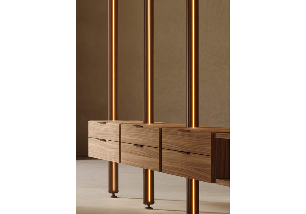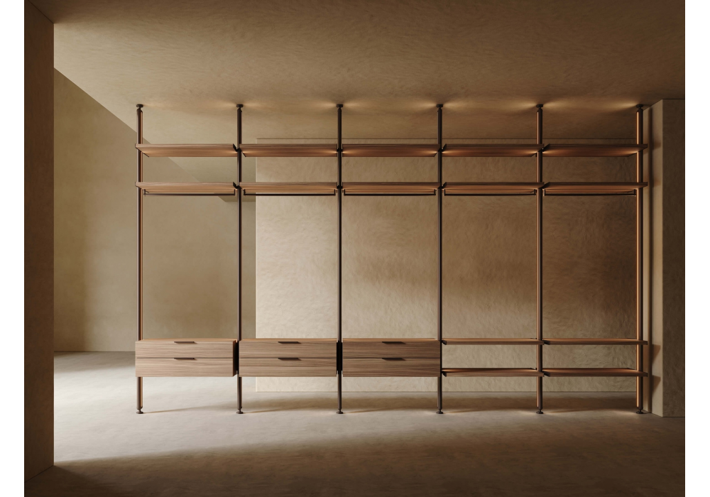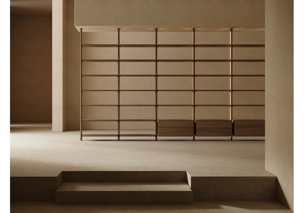 L25 firmato da Officinadesign Lema per Lema è un sistema modulare composto da contenitori e ripiani con montanti in alluminio estruso, elementi portanti disponibili con fissaggio a pavimento-soffitto o pavimento-parete. Disponibile in diversi modelli e finiture.