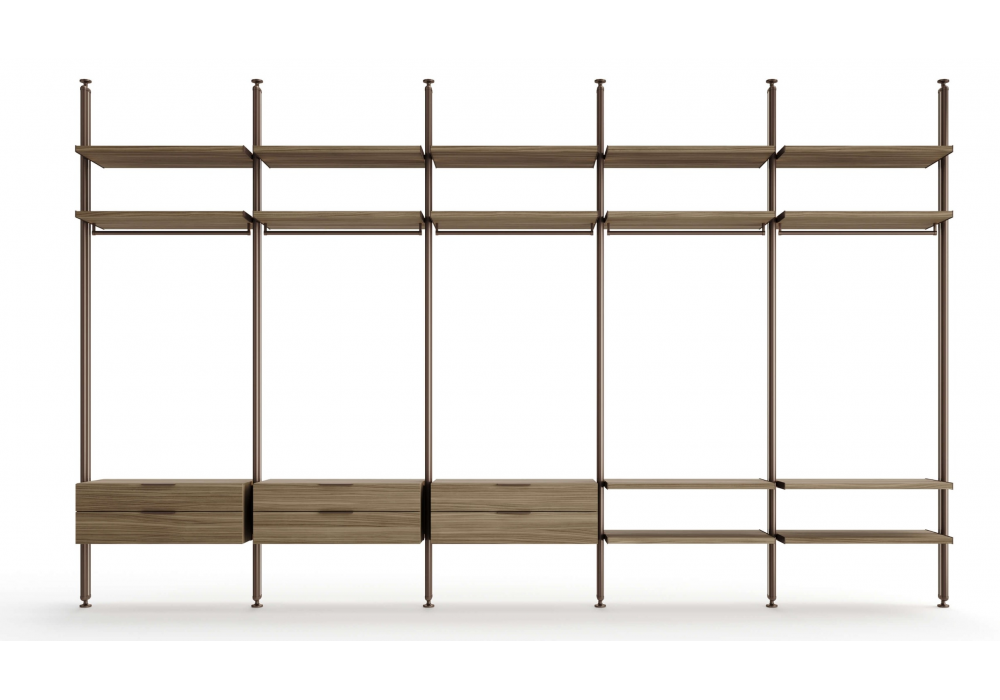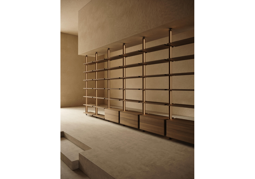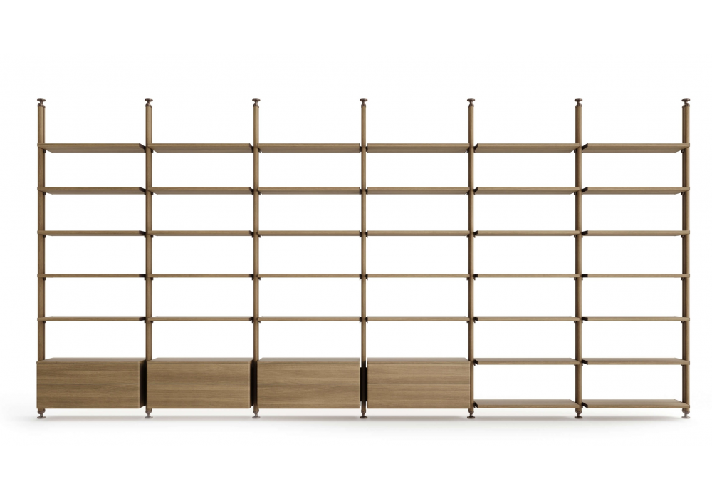 L25 firmato da Officinadesign Lema per Lema è un sistema modulare composto da contenitori e ripiani con montanti in alluminio estruso, elementi portanti disponibili con fissaggio a pavimento-soffitto o pavimento-parete. Disponibile in diversi modelli e finiture.