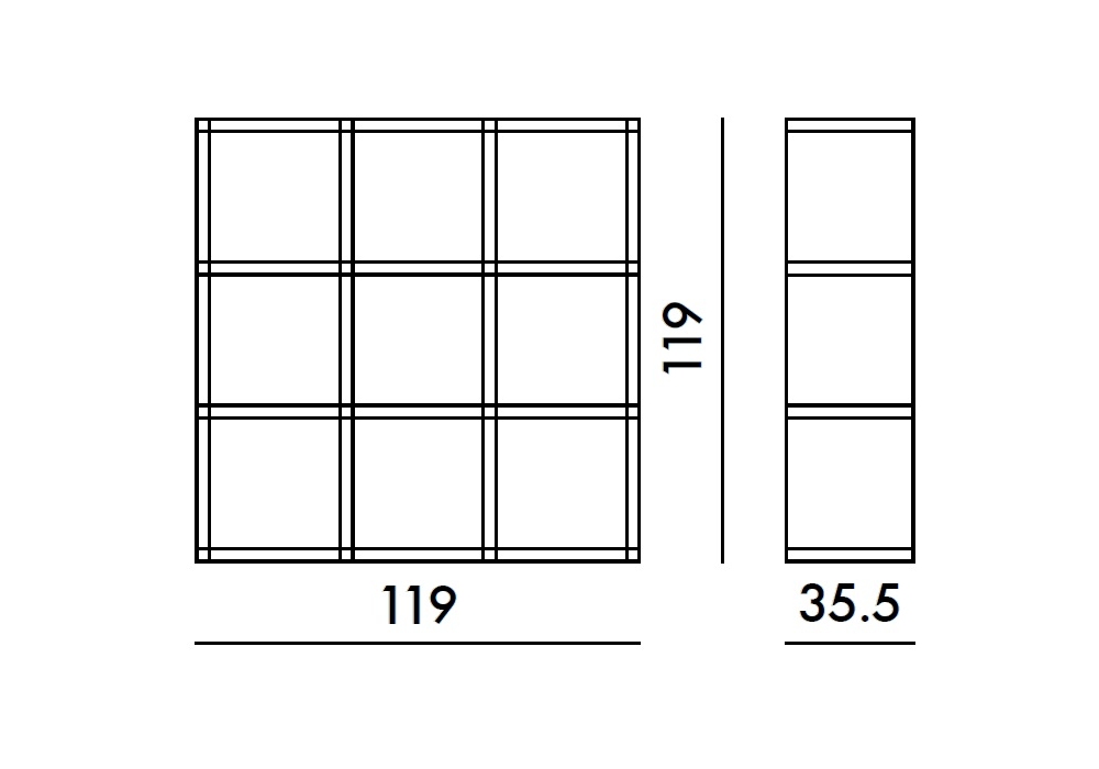 Polvara firmata da Giulio Polvara per Kartell è una libreria quadrata realizzata in ABS bianco o nero.