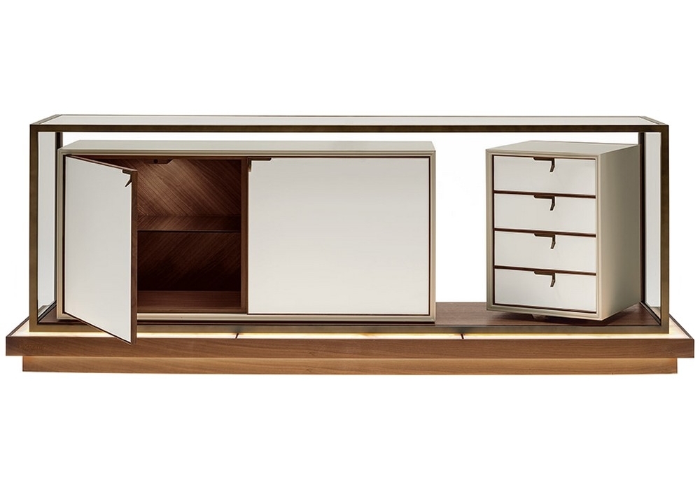 Town è un mobile multifunzionale disegnato da Carlo Colombo per Giorgetti. Town rappresenta un nuovo skyline dell’abitare: è un mobile multifunzionale nato con l’obiettivo di comporre a proprio piacimento, a seconda degli spazi e delle esigenze, gli ambienti della casa. Town coniuga funzionalità ed estetica offrendo spazio per contenere, dai libri ai servizi per la tavola, per arredare con soluzioni adatte ad ogni necessità. La struttura esterna è costituita da un telaio in metallo verniciato color bronzo effetto naturale con cristallo trasparente accoppiato con un tessuto metallizzato. La struttura interna in particelle di legno è laccata opaca satinata in 5 colori. I bordi e i frontali dei cassetti, con maniglia in metallo, guide scorrevoli a scomparsa ad estrazione totale dotate di sistema silent system, sono rivestiti in cuoio.