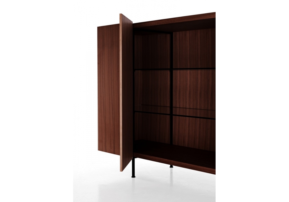 Tiller è una madia alta disegnata da Piero Lissoni per Porro. Tiller presenta 4 ante apribili una sull’altra a 180°, particolarità che varia piacevolmente il suo disegno in facciata. Rialzata sui 4 piedini metallici nero opaco che la sollevano da terra, la madia dimostra l’abilità tecnica del marchio, capace di sperimentare nuovi sistemi di apertura e tecnologie.
