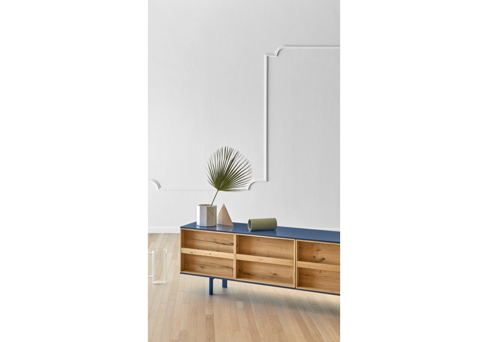 Ramblas firmata da E-ggs per Miniforms è una collezione di madie con struttura e base in metallo laccato disponibile in vari colori. Ante scorrevoli con sistema di apertura a libro realizzate in legno o negli stessi colori della struttura.