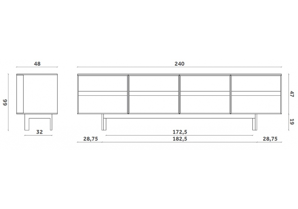 | Dimensioni | • 120 x 48 x H 66 cm; • 180 x 48 x H 66 cm; • 240 x 48 x H 66 cm |