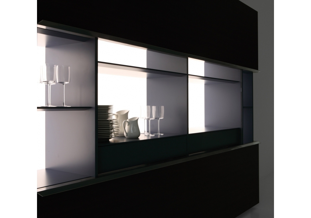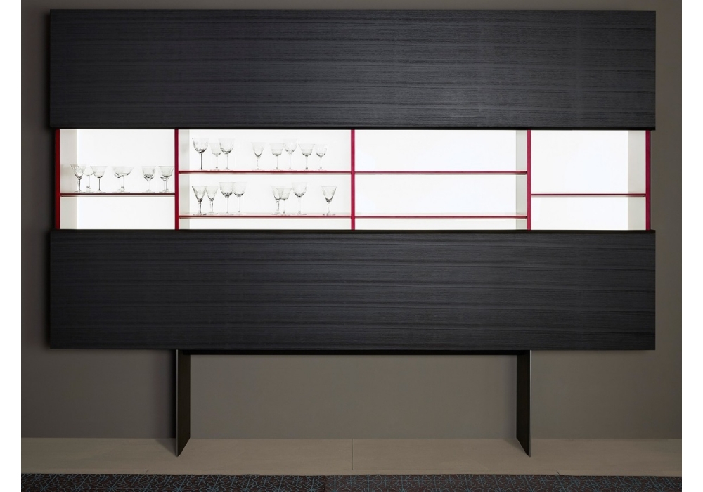 Gallery firmata da Gabriele & Oscar Buratti per Porro è una madia. Il suo design pulito e razionale, caratterizzato dal taglio orizzontale tra le due grandi ante che scorrono in alto ed in basso, svela gli scaffali interni messi in risalto dal fondale luminoso. Disponibile in 2 diverse dimensioni, con o senza illuminazione del fondale ed in un ampia gamma di finiture.