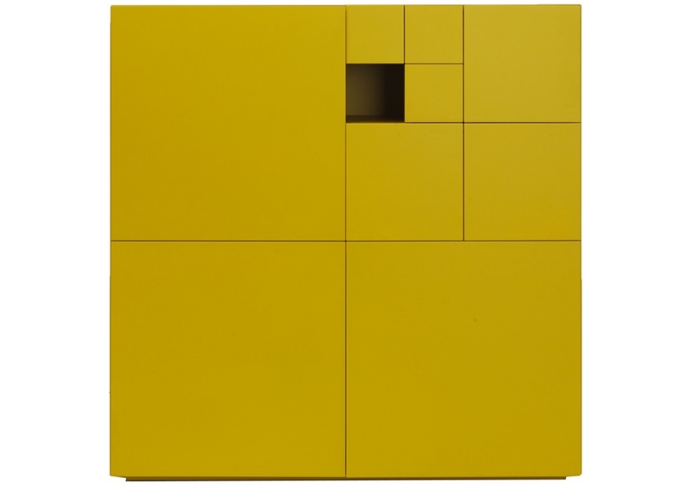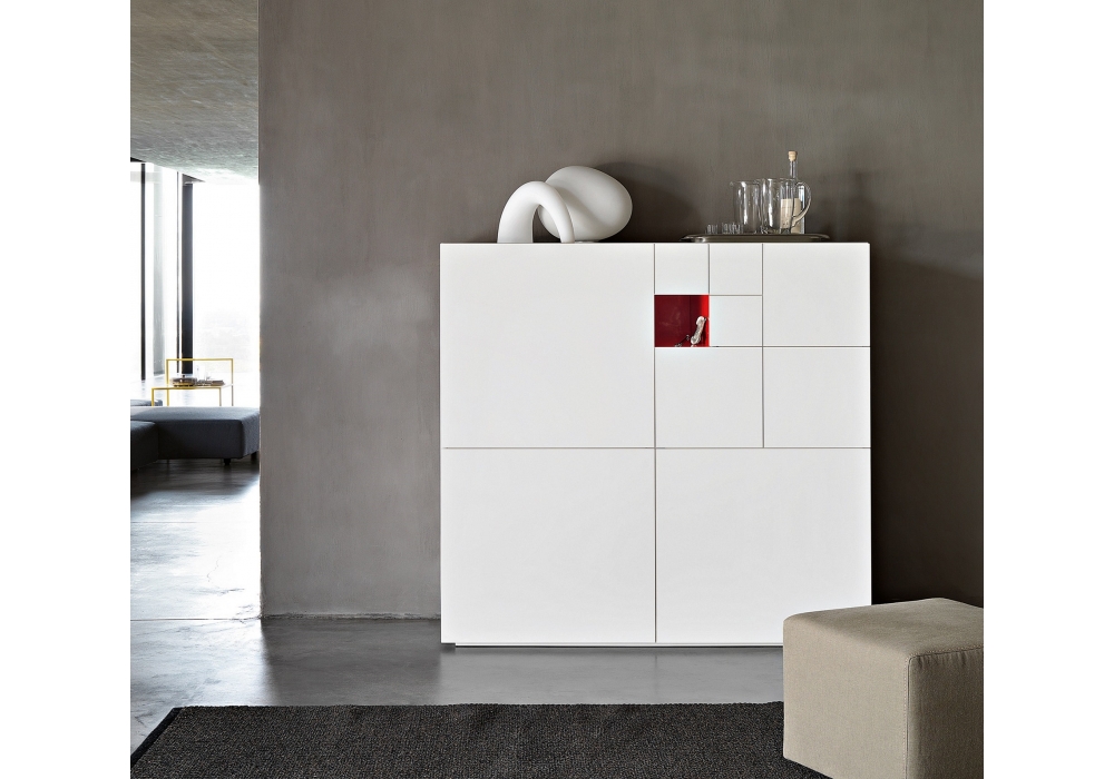 Conchiglia firmata da Studiocharlie for Lema è una madia con cinque ripiani interni in legno. Disponibile in diverse finiture laccate. L'elemento metallico, da inserire nel vano a giorno, è verniciato in tre colori diversi (arancio RAL 2002, blu RAL 5010