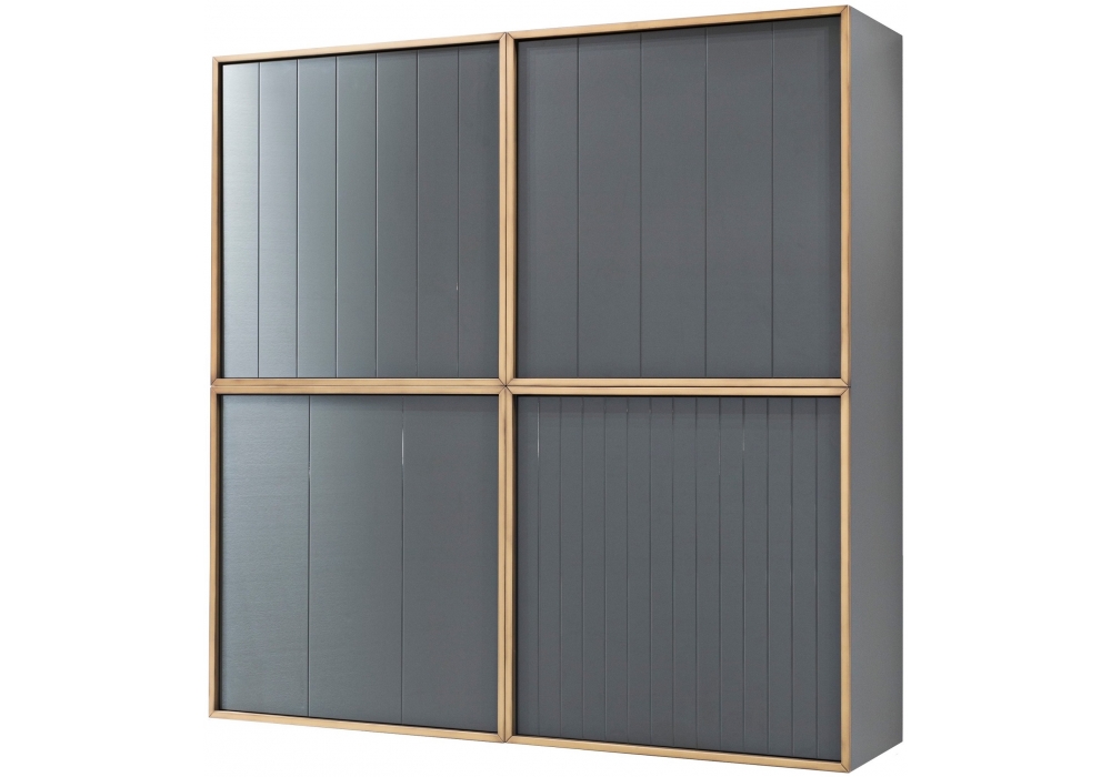 Amadeus firmato da Andrea Parisio per Meridiani è un pensile smontabile in legno quattro ante. Disponibile nella versione in rovere con struttura esterna e interna, ante e inserti in rovere tinto black e nella versione laccata, con ante laccate in opaco o lucido con inserti in legno lacca opaca black o verniciati ottone bronzato.
