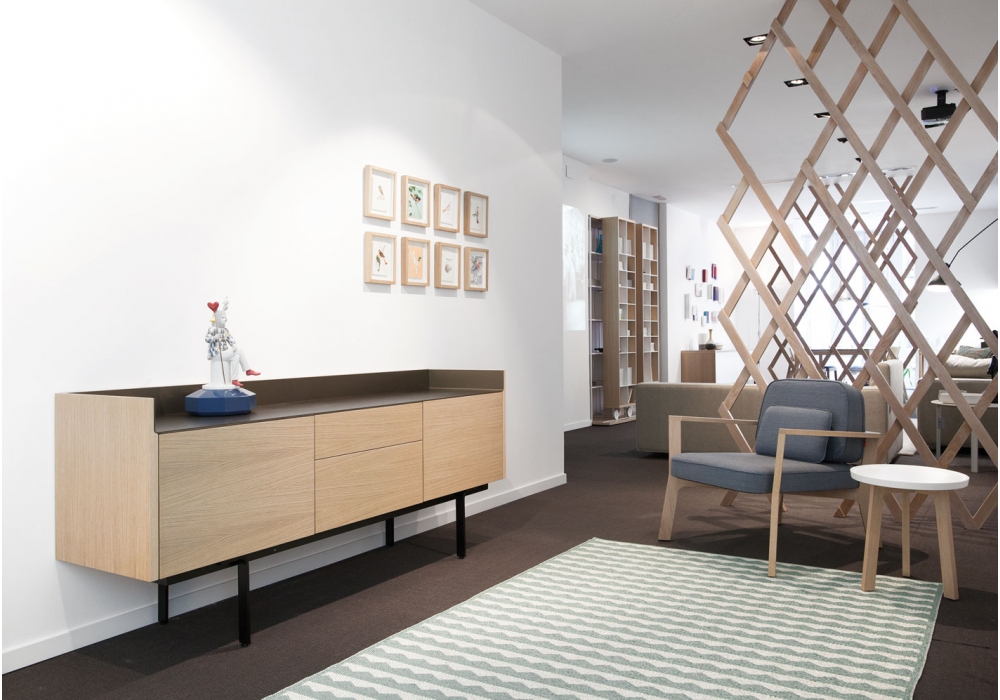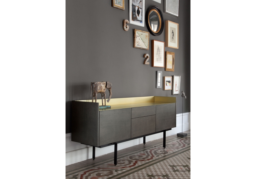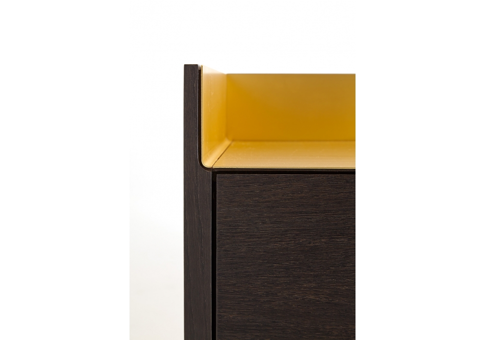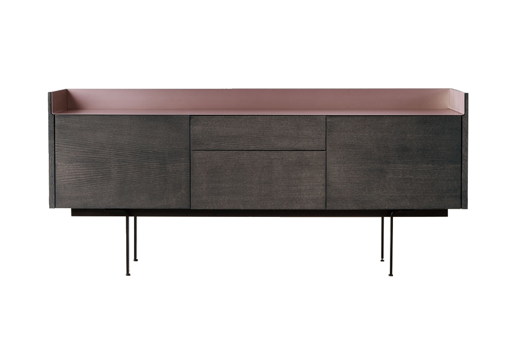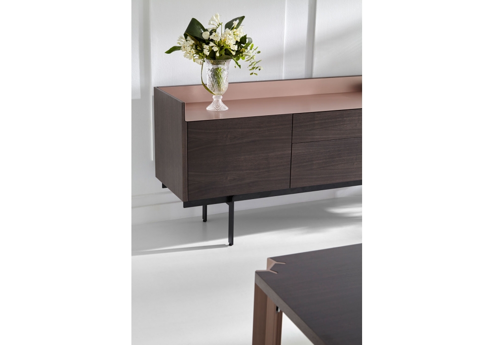 Stockholm firmata da Mario Ruiz per Punt è una madia con struttura in MDF e pannello con particelle E1 ed impiallacciata in legno di rovere o noce. Piano superiore in alluminio in differenti finiture. Le ante (senza maniglia) presentano un' apertura a 105°, mentre i cassetti sono dotati di guide ad estrazione completa.