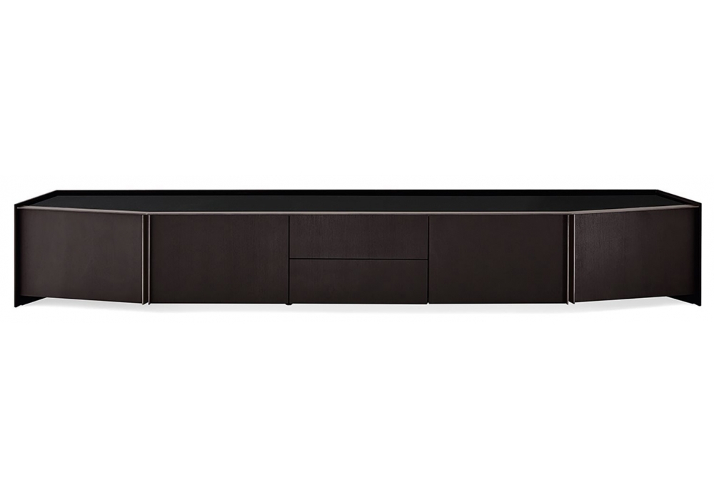 Athus firmata da Oscar & Gabriele Buratti per Gallotti&Radice è una madia in frassino laccato nero poro aperto. Dettagli in metallo verniciato bronzo patinato. Top in marmo Stardust Grey o Sahara Noir. Disponibile anche in cristallo temperato 6mm retroverniciato nero brillante. Dotata di ripiano interno in cristallo extralight 10mm bisellato temperato. Schienali interni in specchio 6mm extralight. Cassetti con fondo in pelle scamosciata e apertura push and pull solo per versioni 48h e 75,5h.