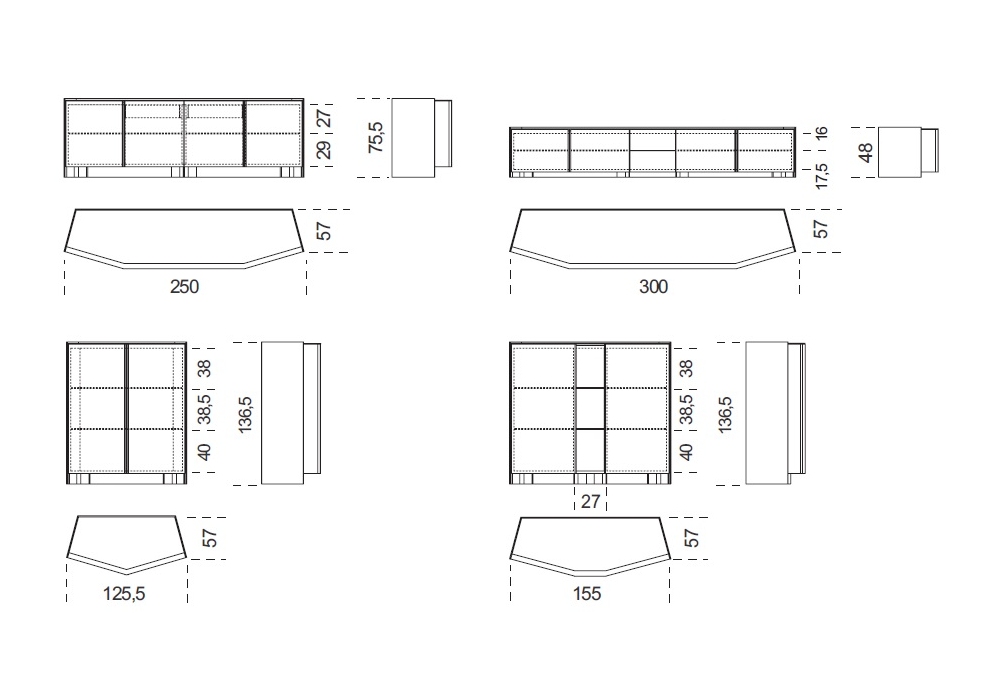 | Larghezza | 125,5 / 155 / 250 / 300 cm |