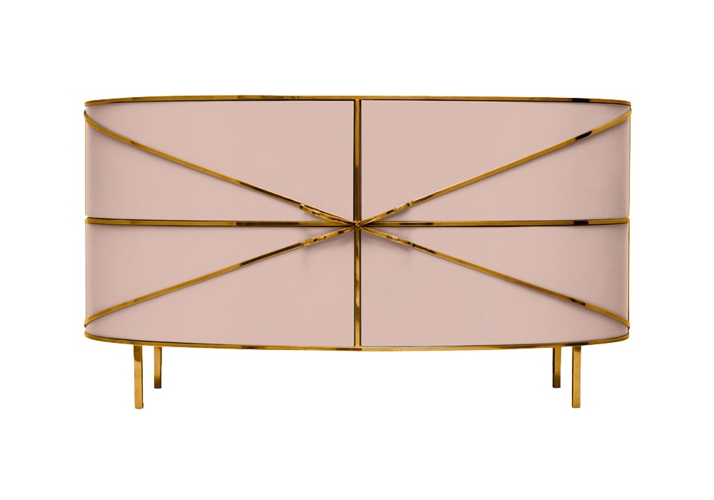 88 Secrets Sideboard firmata da Nika Zupanc per Scarlet Splendour è una madia dalle linee femminili e sinuose con dettagli metallici in oro giallo o rosa. Disponibile in diverse finiture.