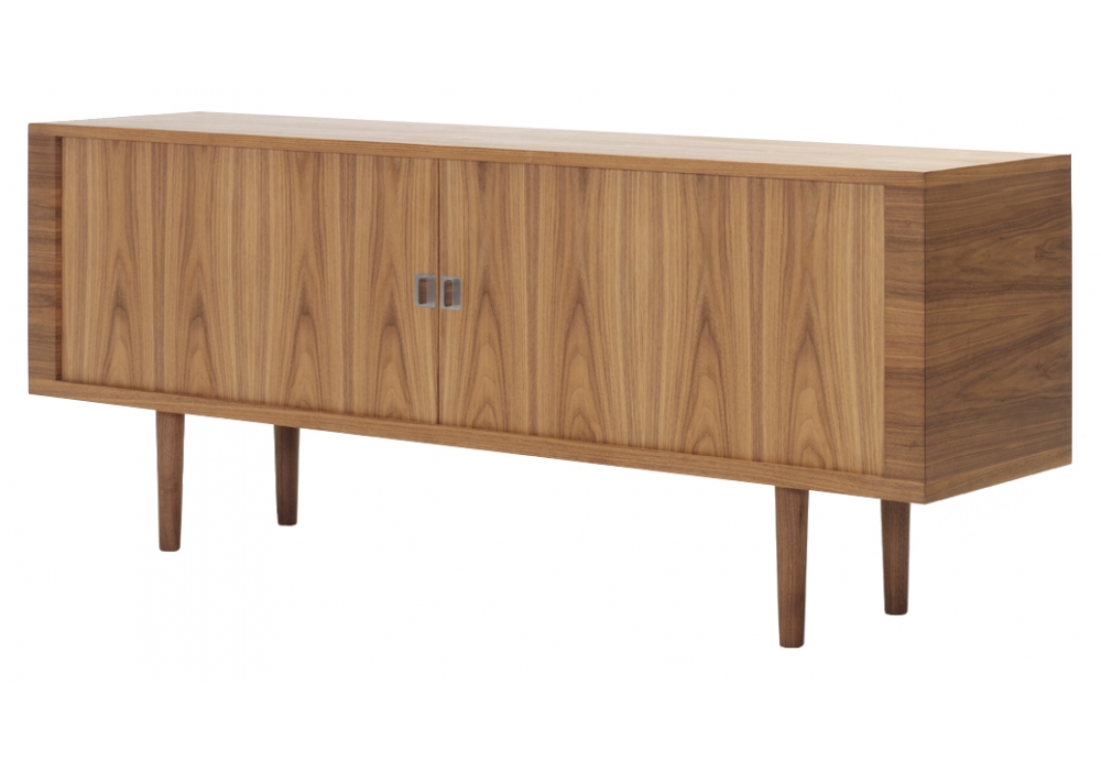 CH825 Credenza firmata da Hans J. Wegner per Carl Hansen & Søn è una credenza con rivestimento esterno impiallacciato in legno di noce o rovere e finitura interna in legno massello di rovere. L'interno presenta scaffali regolabili e cassetti estraibili progettati per consentire la semplice installazione di cassetti aggiuntivi. Le gambe sono disponibili in acciaio o nella stessa finitura dell'impiallacciatura.
