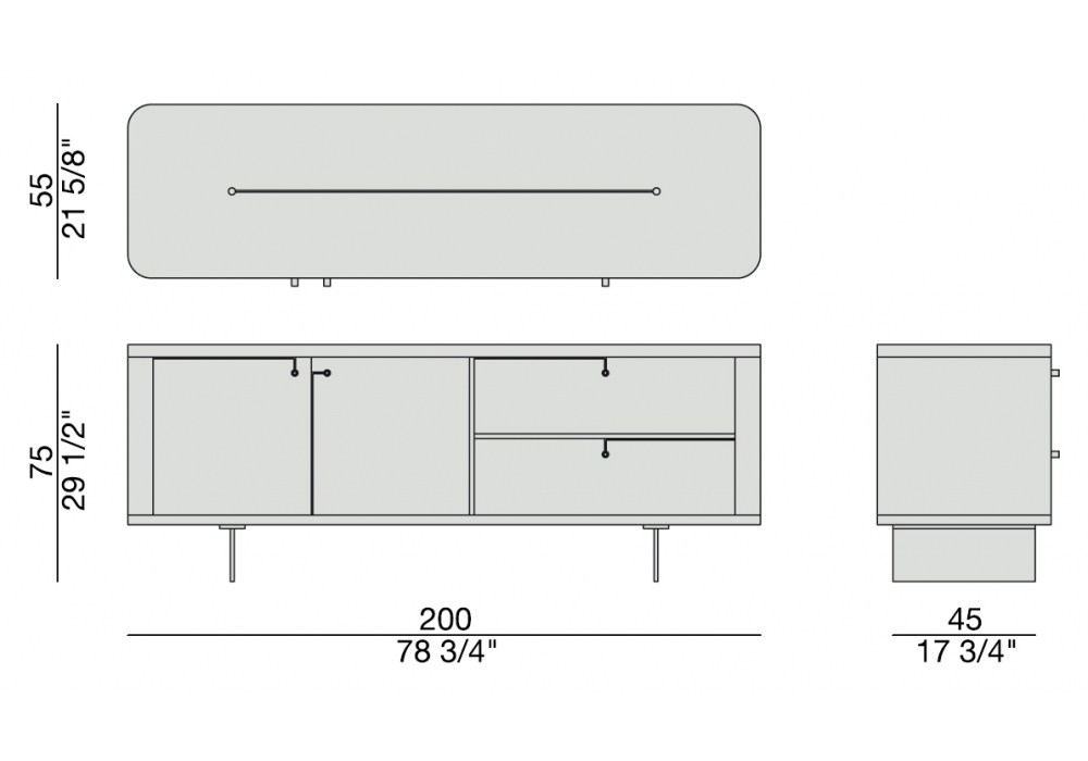 | Dimensioni | 200 x 45 x H 75 cm; 268 x 55 x H 75 cm |
