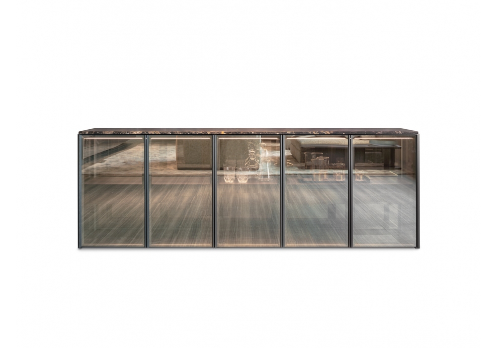 Adrien firmata da Vincent Van Duysen per Molteni&C è una madia realizzata in legno e vetro con piano in marmo o legno. Le spalle laterali e le ante sono in cristallo e lo schienale in legno o cristallo. Disponibile in differenti dimensioni.