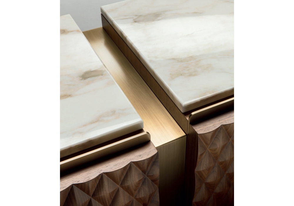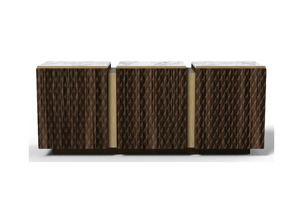 Victor disegnata da Castello Lagravinese Studio for Opera Contemporary è una madia con piano in marmo, struttura in legno e dettagli in metallo. Disponibile in diverse finiture e dimensioni.