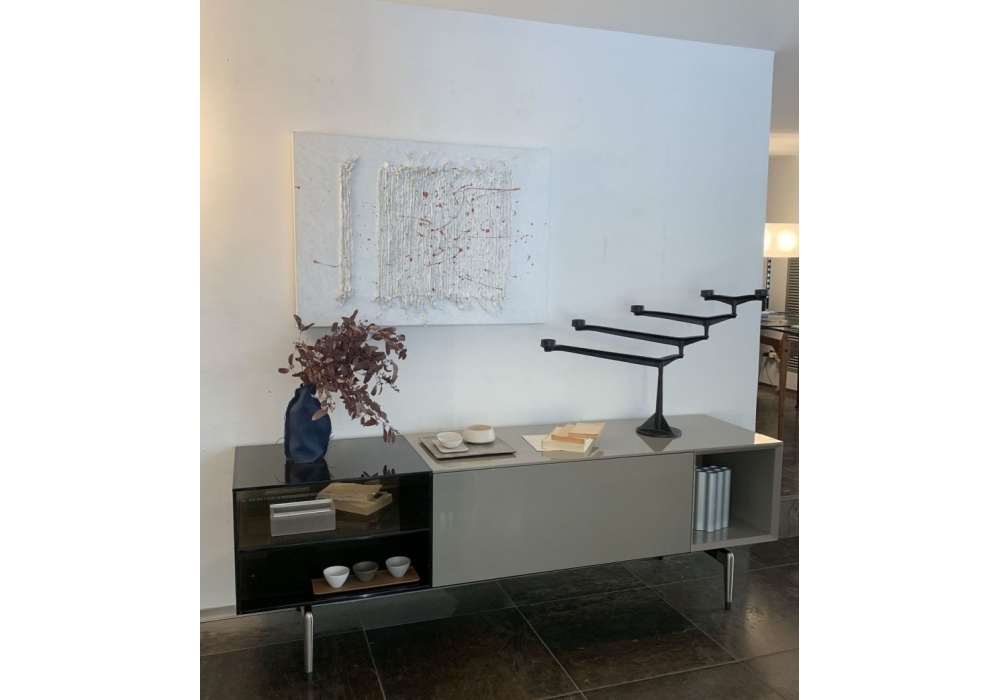 Jeremy firmata da Carlo Colombo è una madia con struttura in rovere, ripiani in vetro, base in metallo verniciato a polveri e piedi in alluminio pressofuso. Disponibile in diverse finiture e modelli.