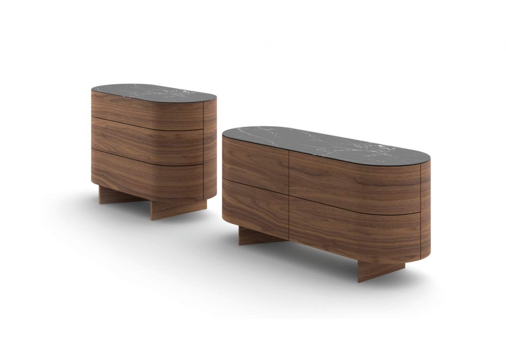 Rondos firmato da Patricia Urquiola per Cassina è una cassettiera. Struttura in legno curvato e impiallacciato disponibile in diverse finiture e piano in marmo.