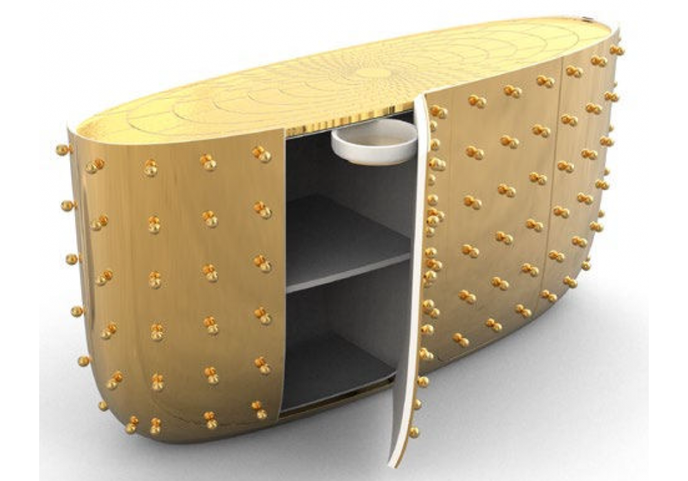 Oasis firmata da Richard Hutten per Scarlet Splendour è una madia realizzata in MDF, compensato e ottone.
