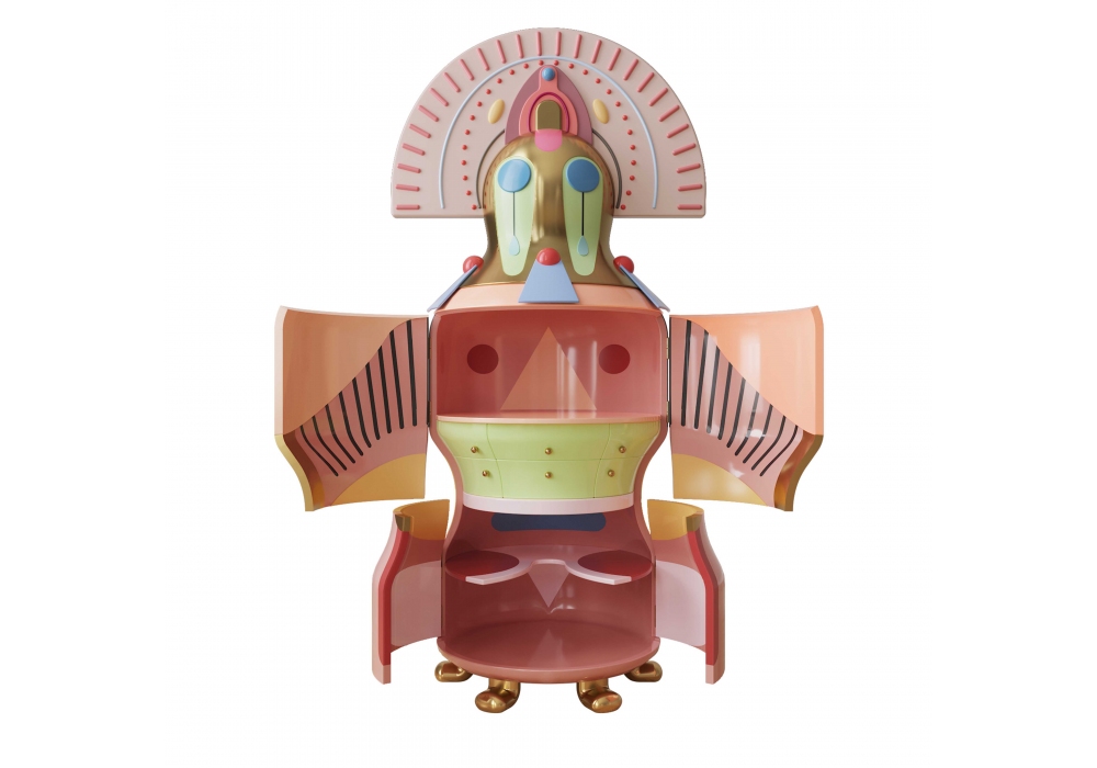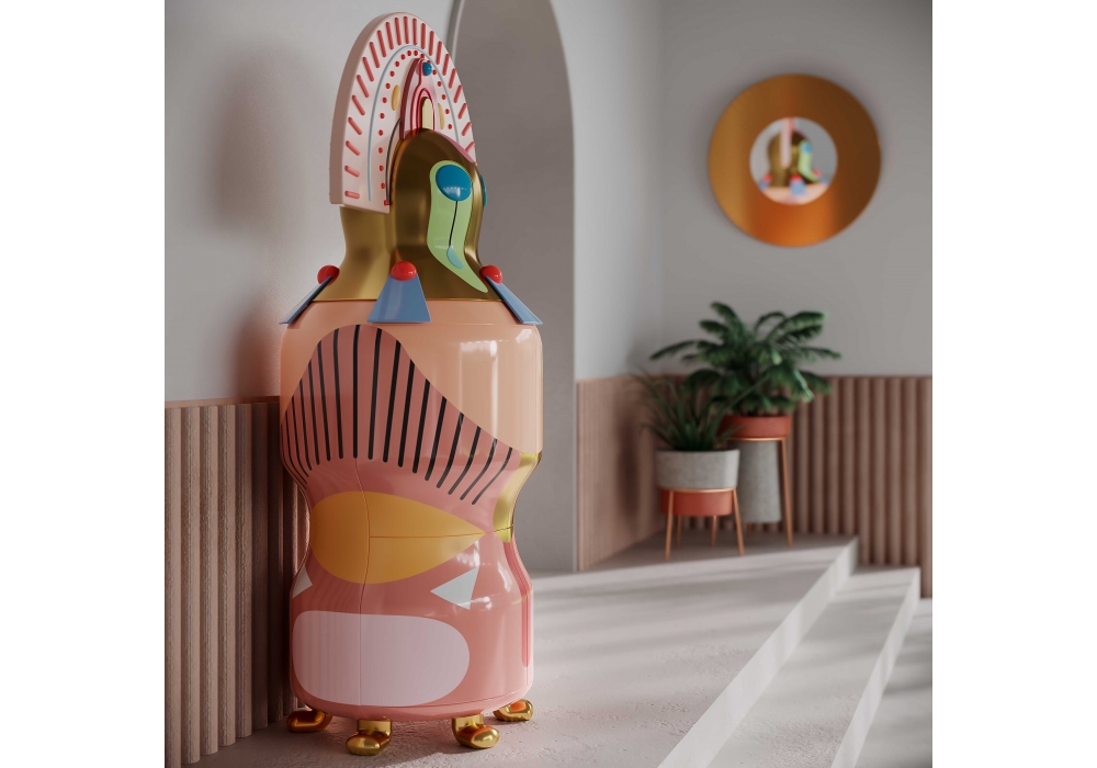Chhau Donna firmata da Elena Salmistraro per Scarlet Splendour è un mobile contenitore in resina nautica e compensato.