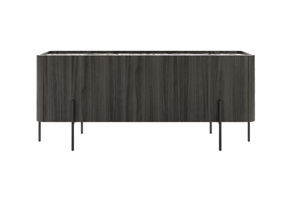 Caillou firmato da Liu Jo Living Collection è una madia. Struttura e ante in legno MDF. Piedino in metallo verniciato a polvere. Piano disponibile in vetro retrolaccato o in ceramica. Disponibile in varie misure.